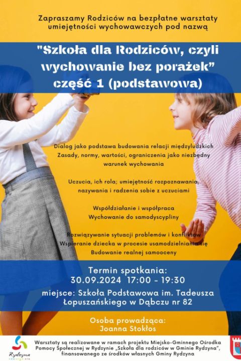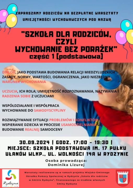 Bezpłatne warsztaty „Szkoła dla rodziców” w gminie Rydzyna