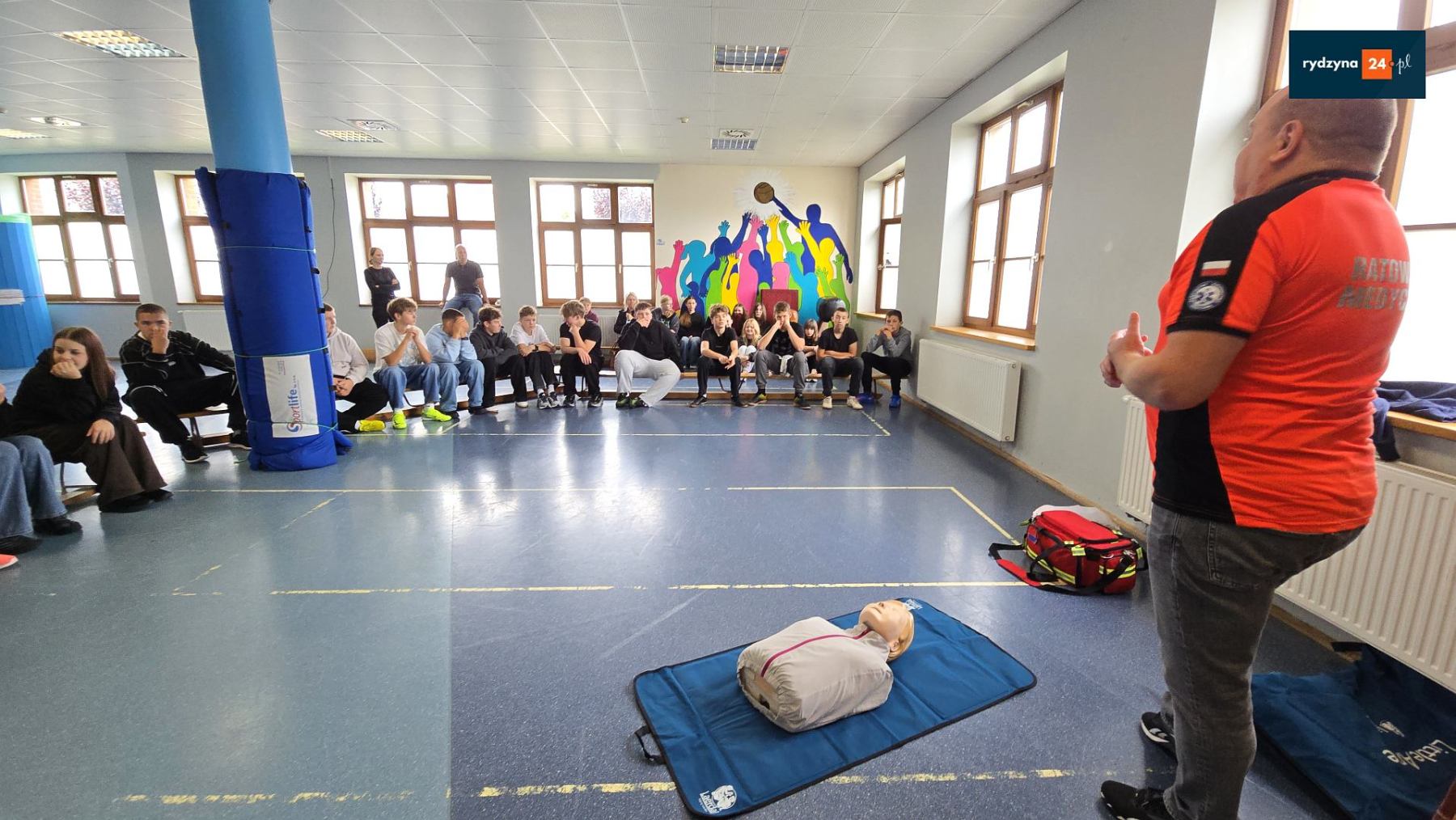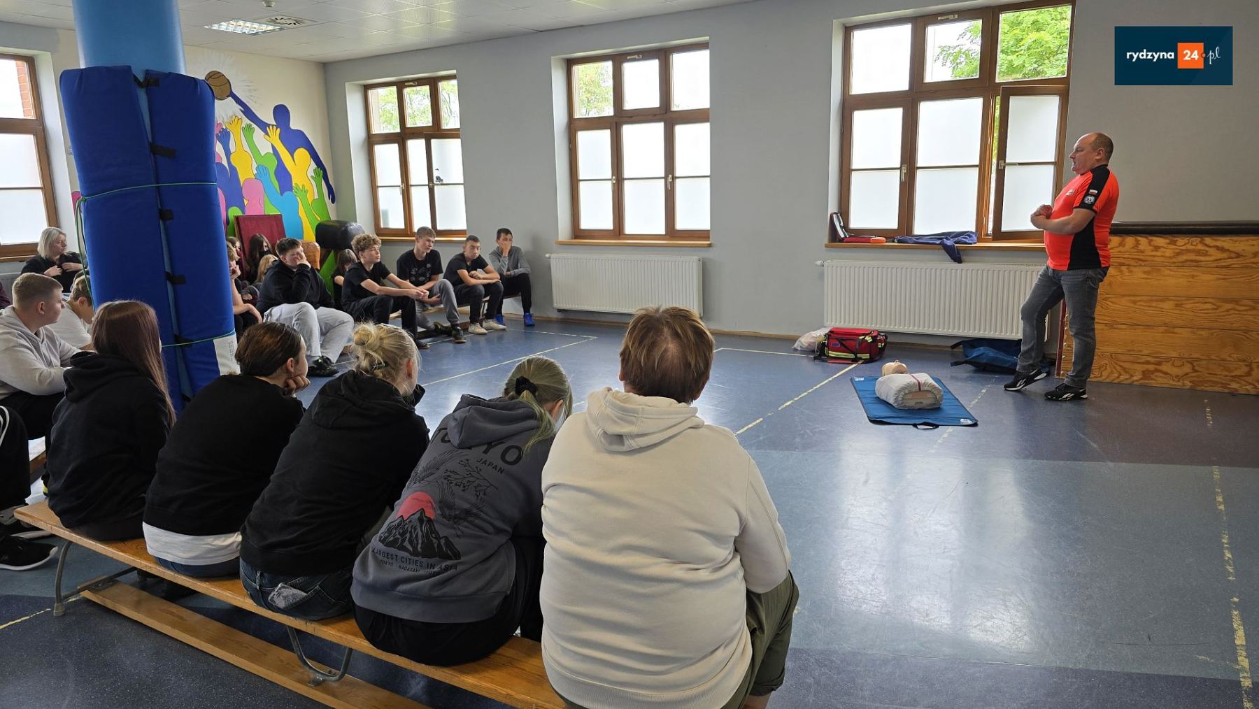 Rozszerzona pierwsza pomoc w Rydzynie. Ósmoklasiści szkoleni przez ratowników medycznych