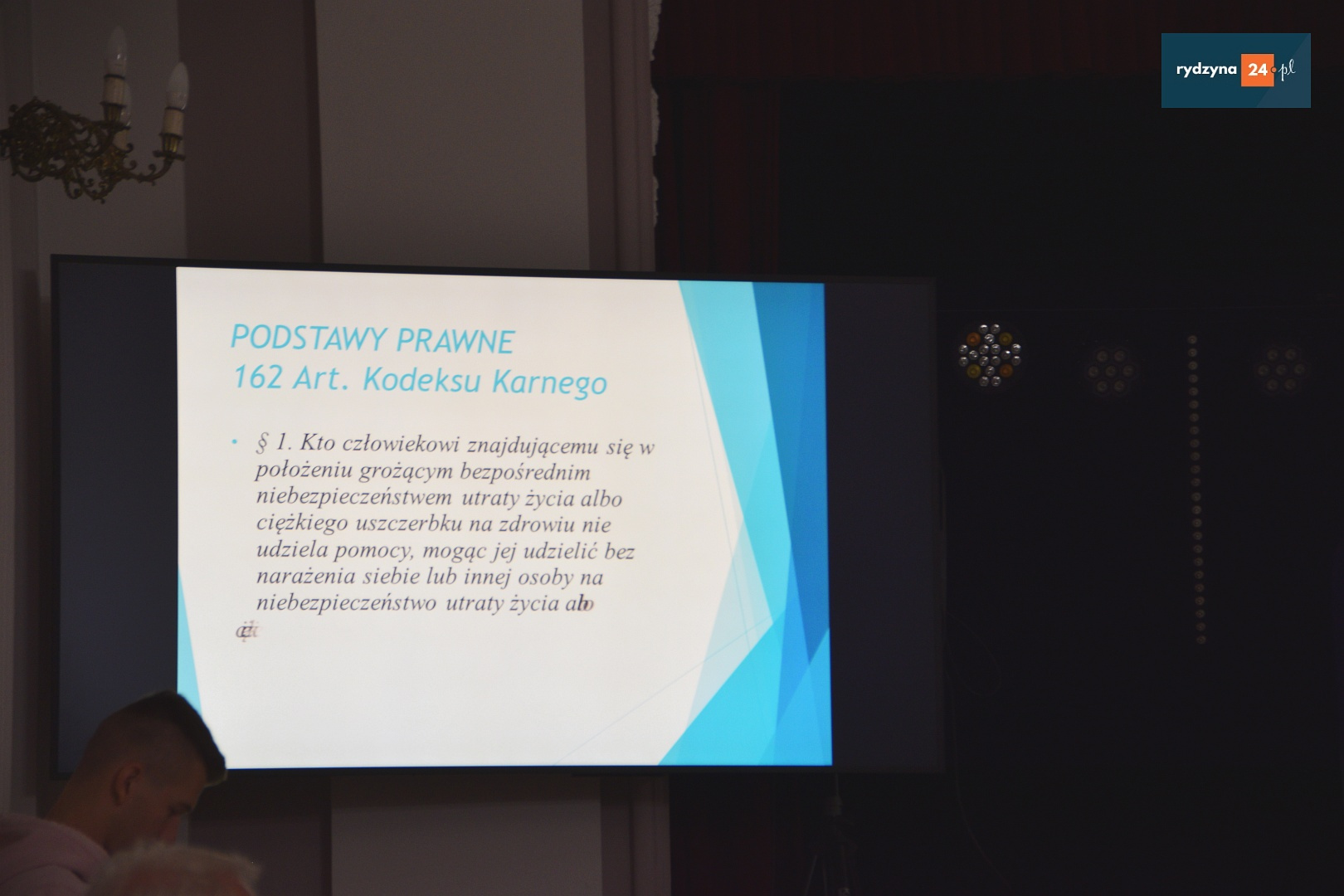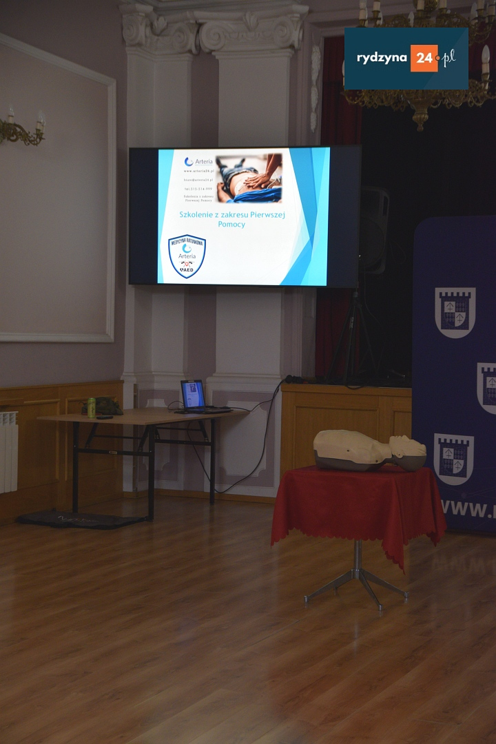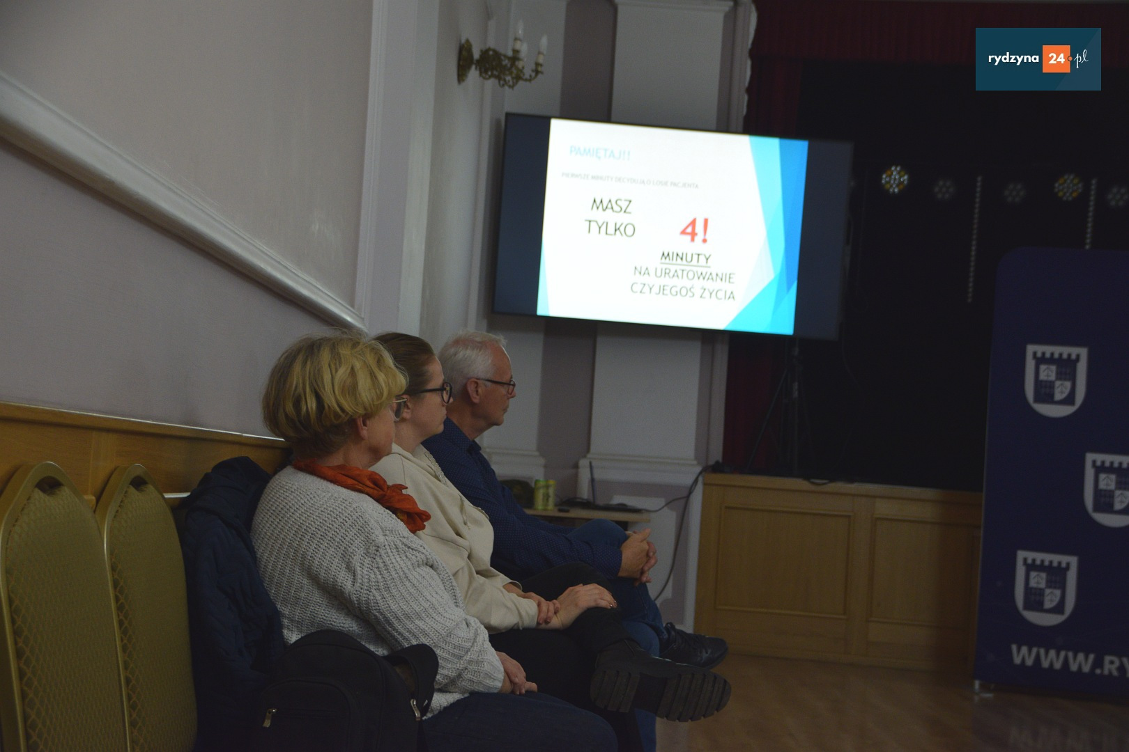 W czwartek, 16 października 2025 roku, w sali widowiskowej Rydzyńskiego Ośrodka Kultury odbyło się szkolenie z użycia sprzętu ratującego życie – AED (automatycznego defibrylatora zewnętrznego).