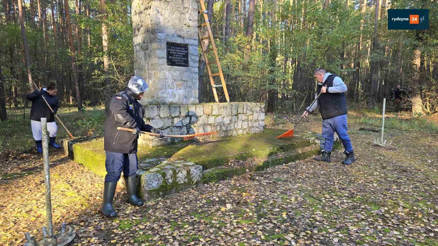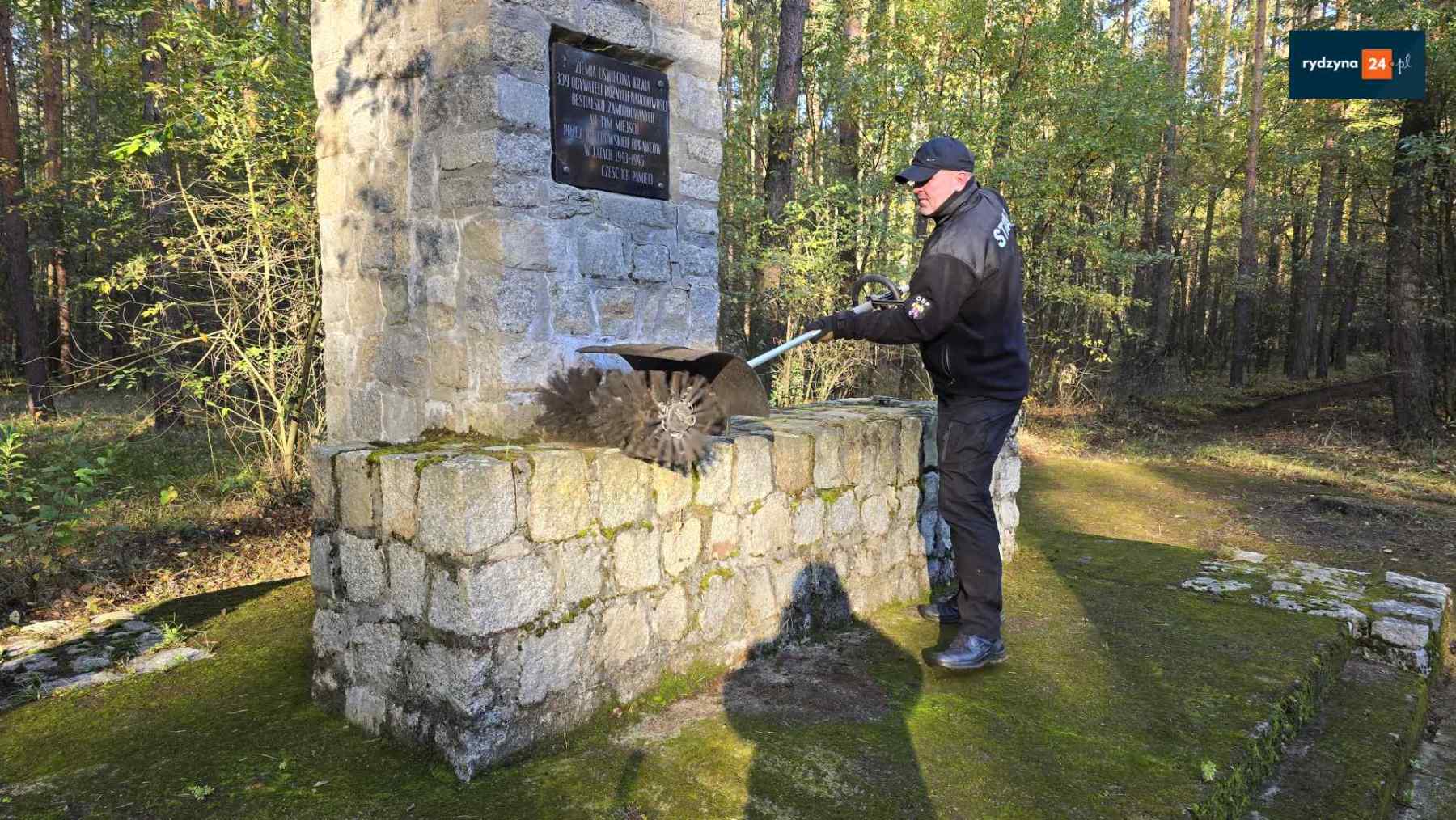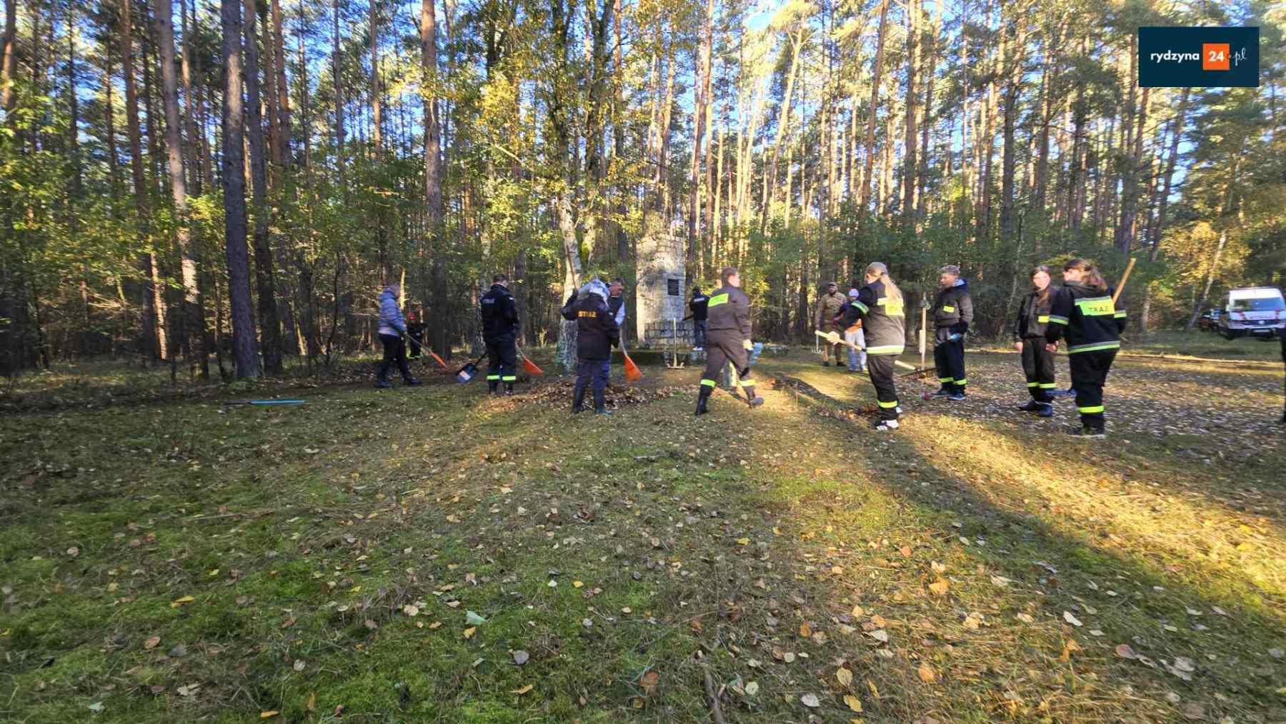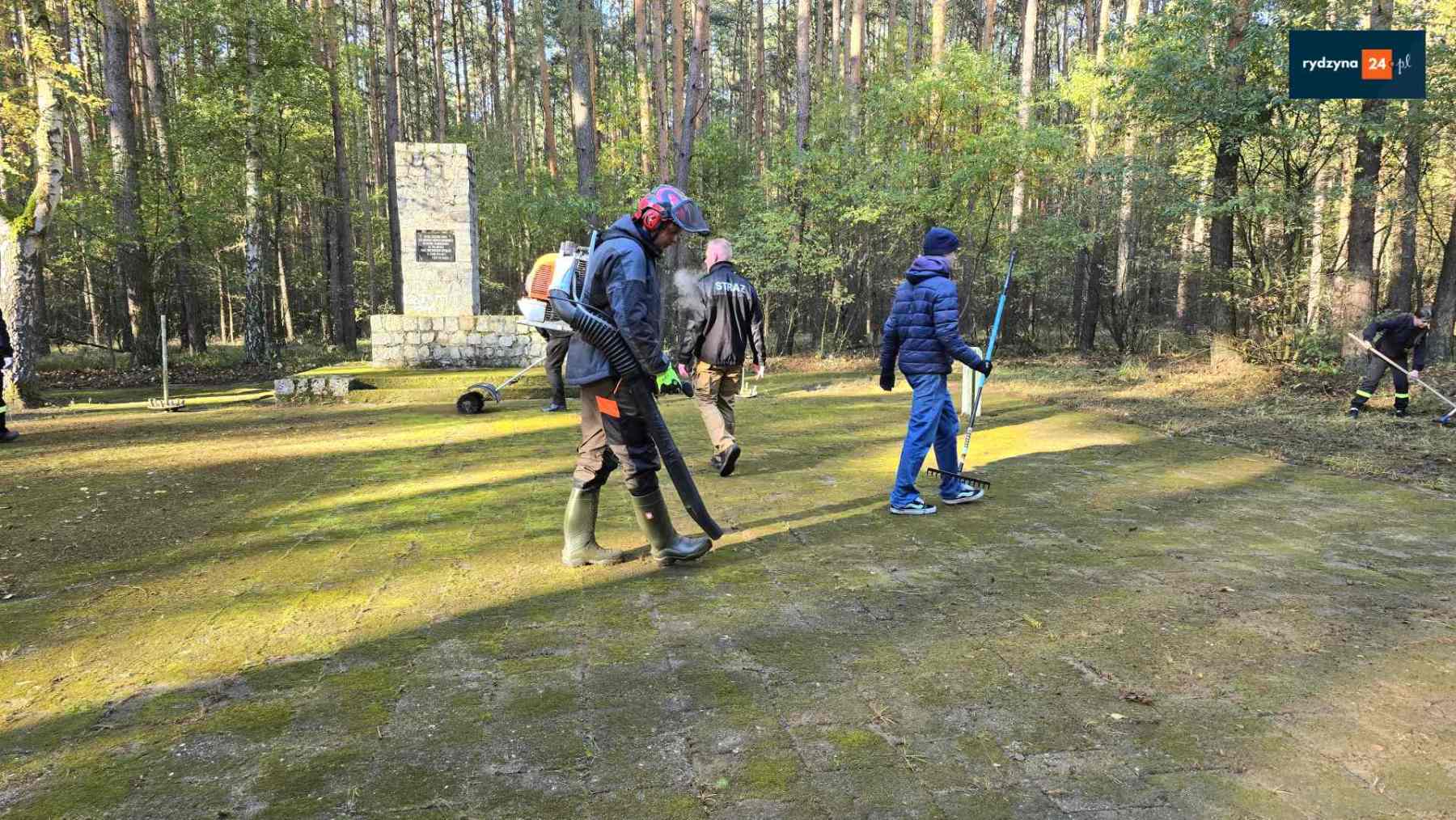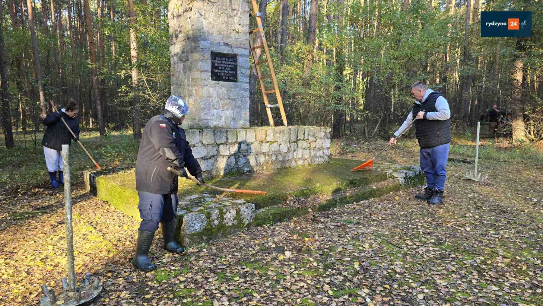 Sprzątanie pomnika ofiar niemieckiej zbrodni w lasach pod Rydzyną