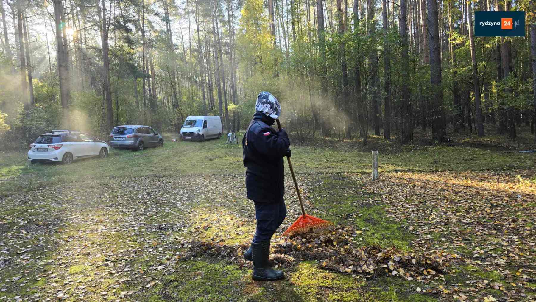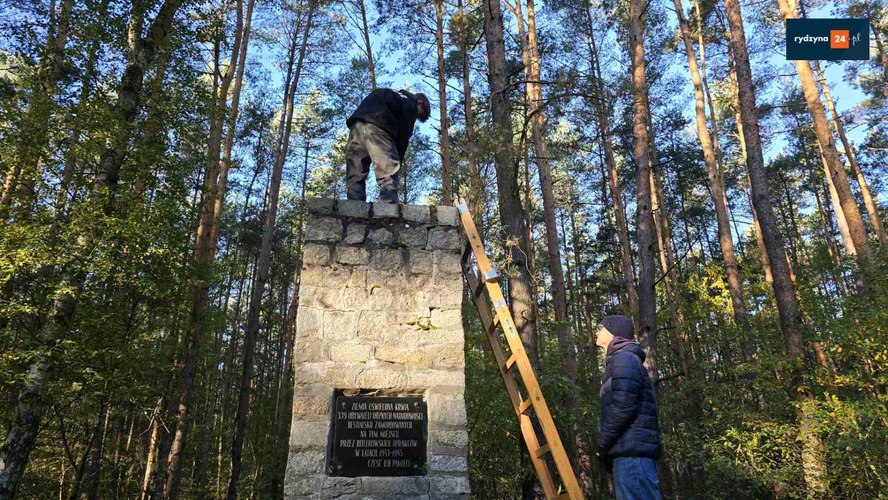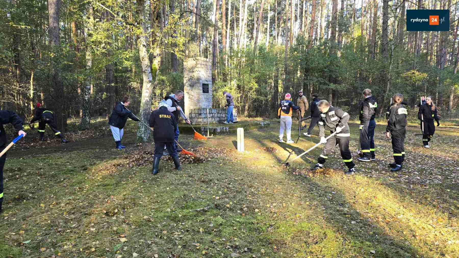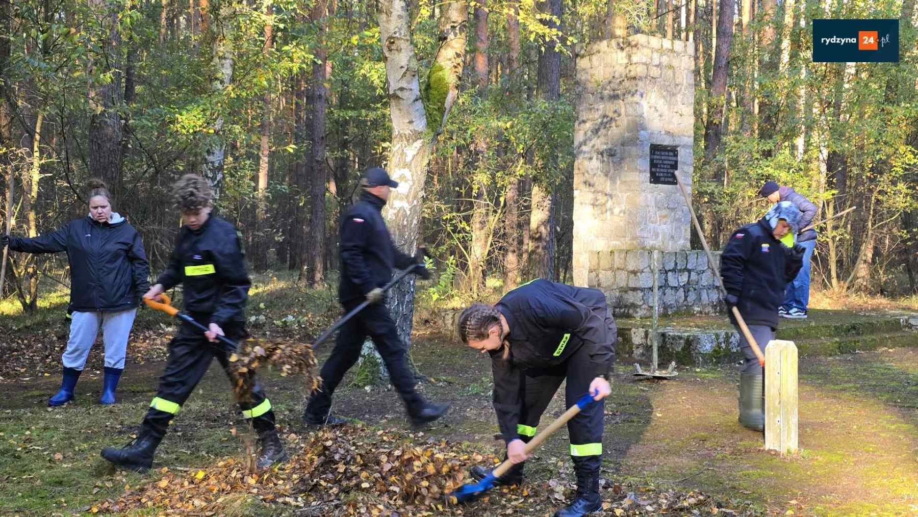 Sprzątanie pomnika ofiar niemieckiej zbrodni w lasach pod Rydzyną