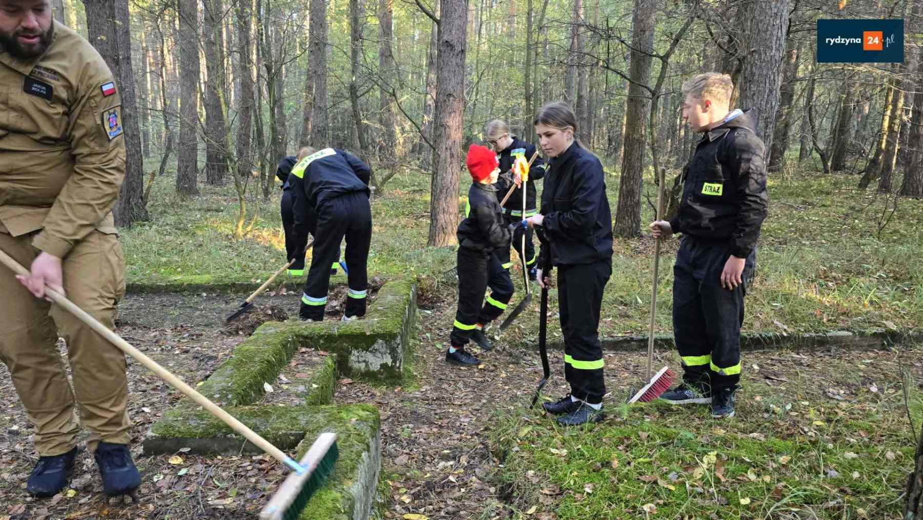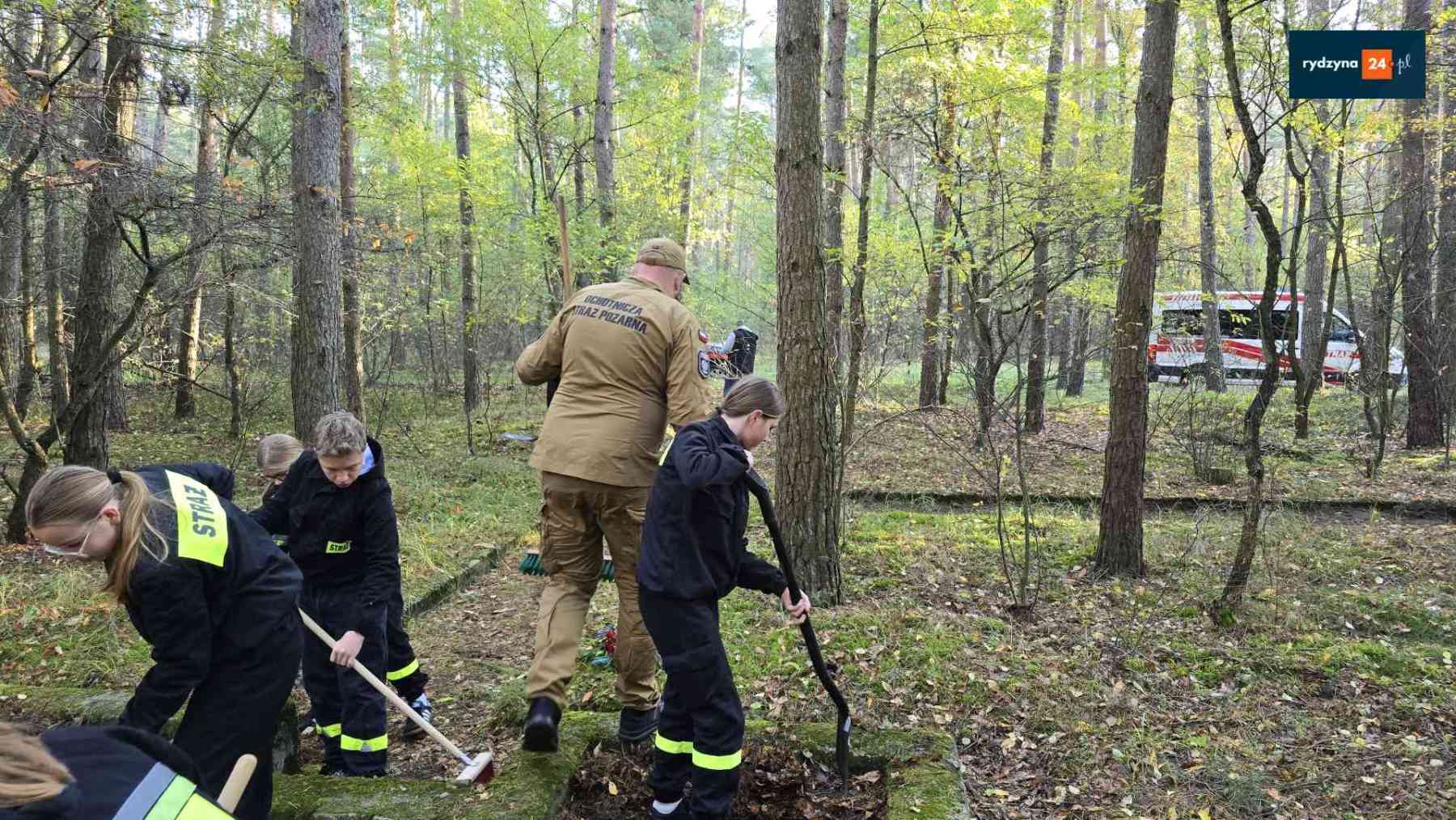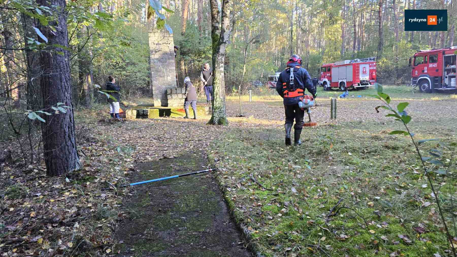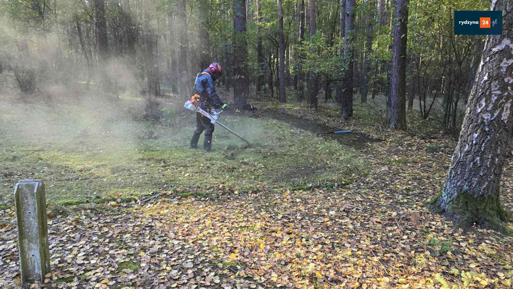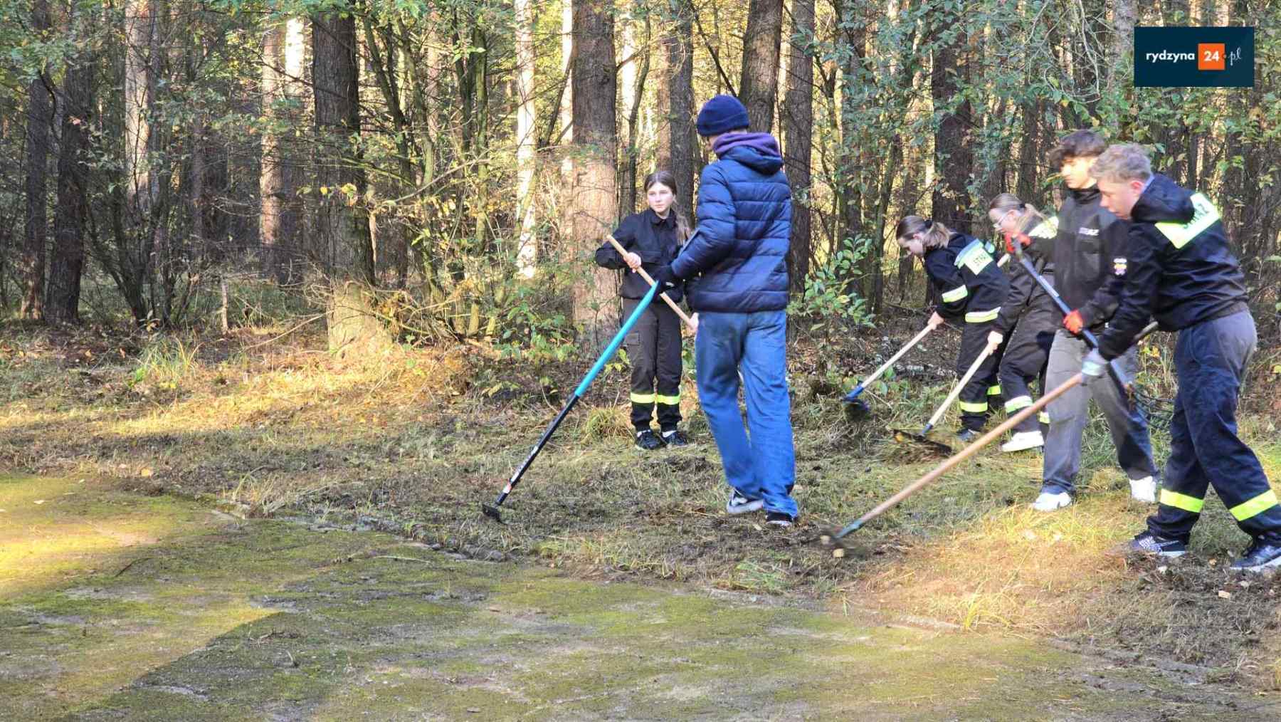 Sprzątanie pomnika ofiar niemieckiej zbrodni w lasach pod Rydzyną