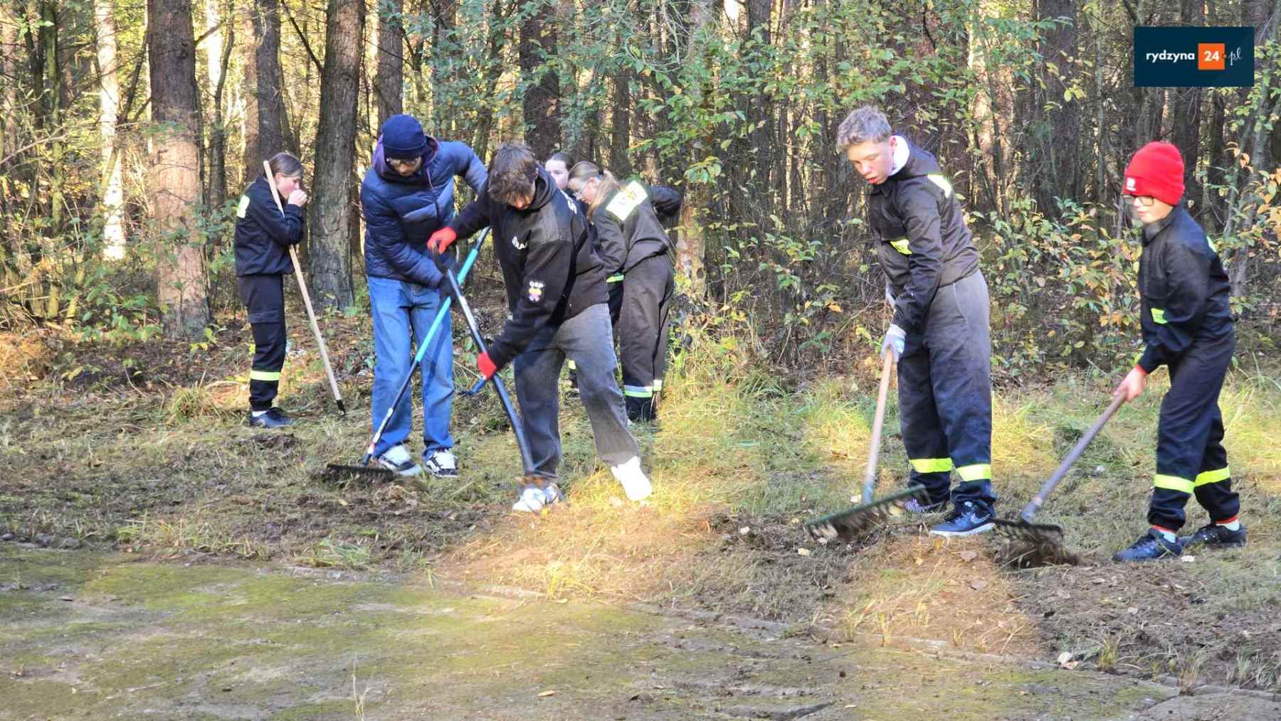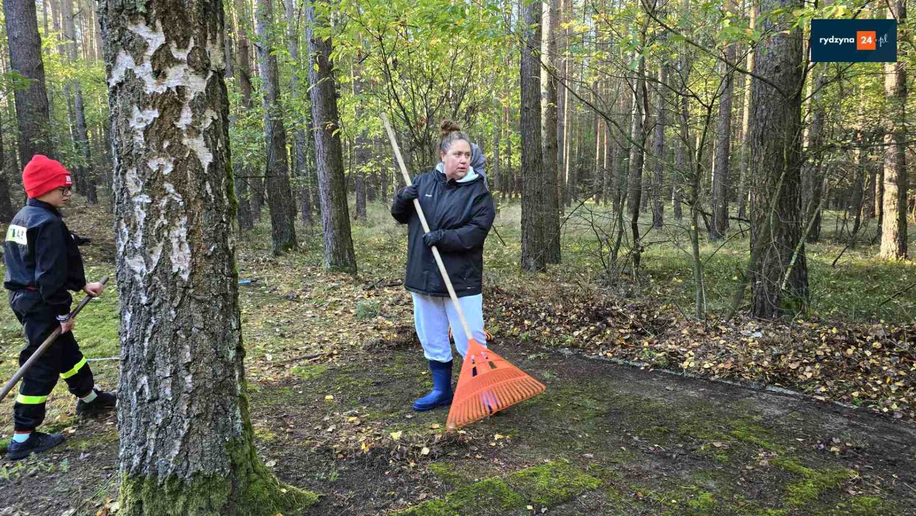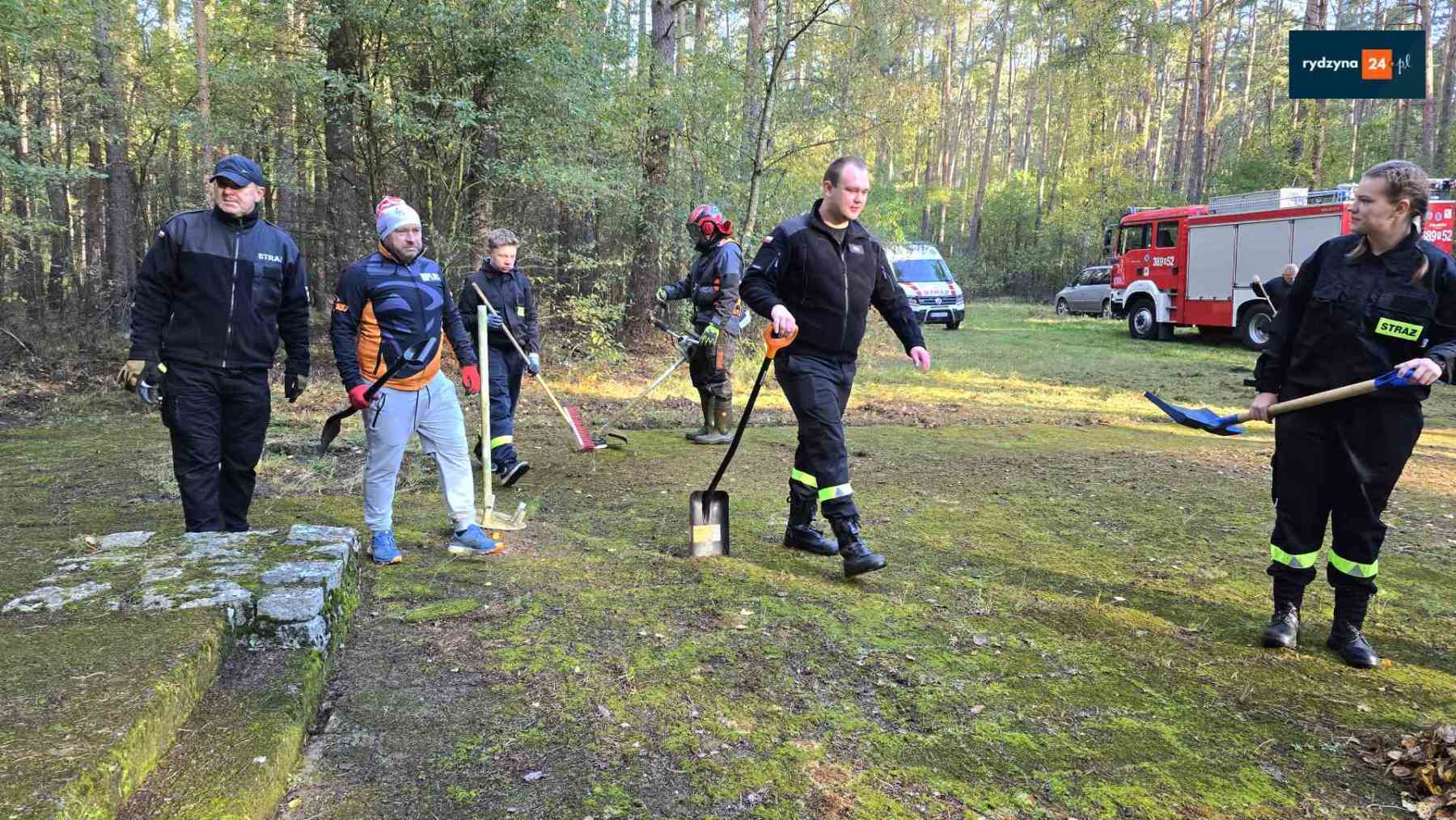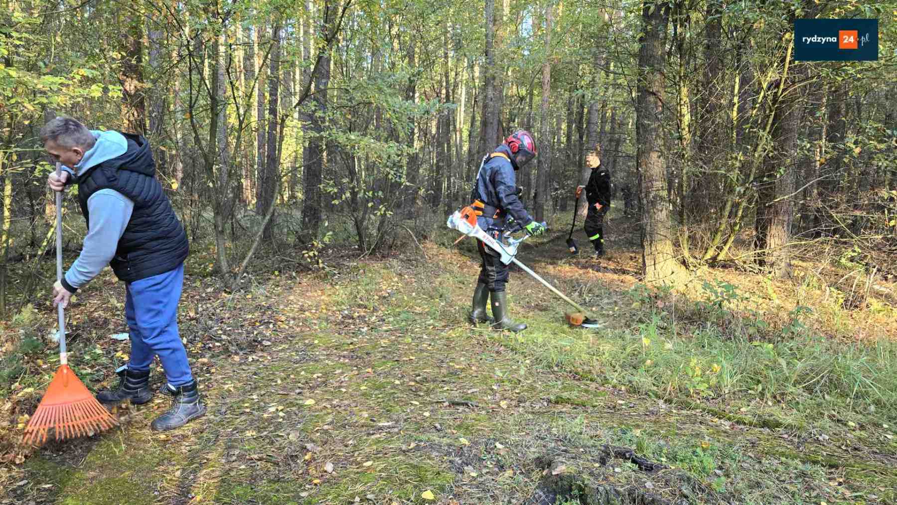 Sprzątanie pomnika ofiar niemieckiej zbrodni w lasach pod Rydzyną