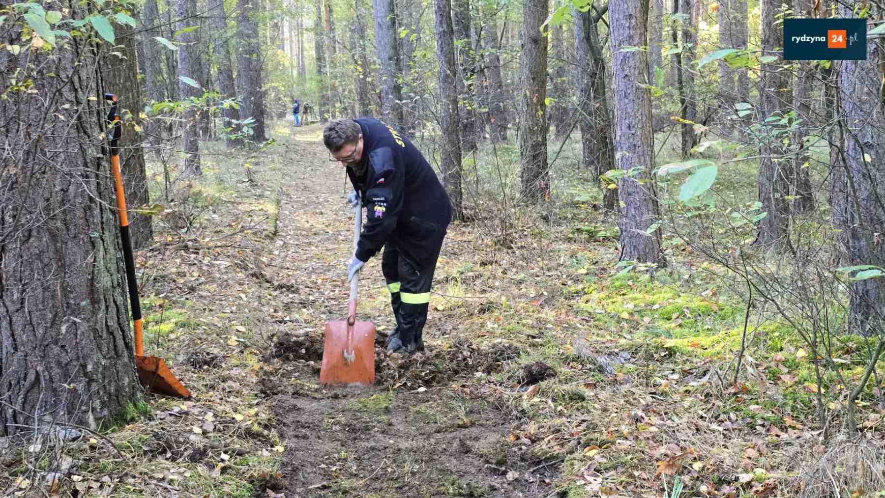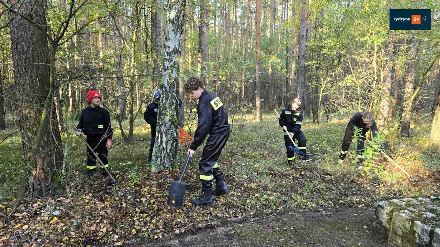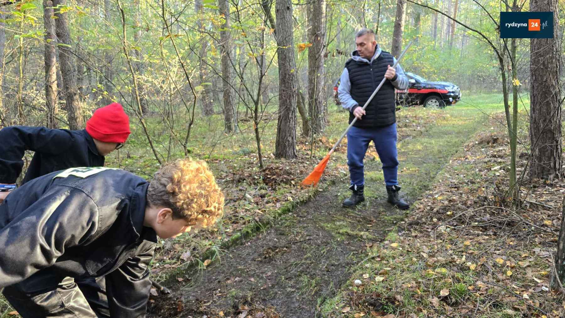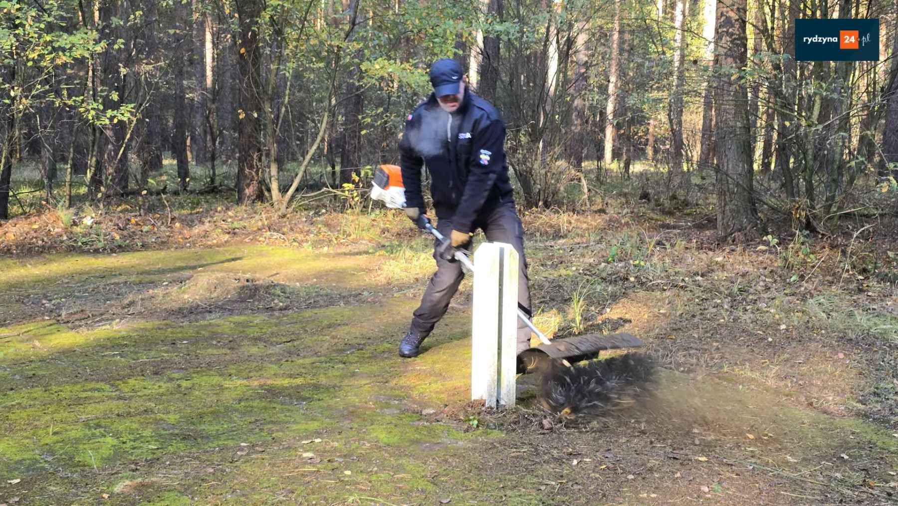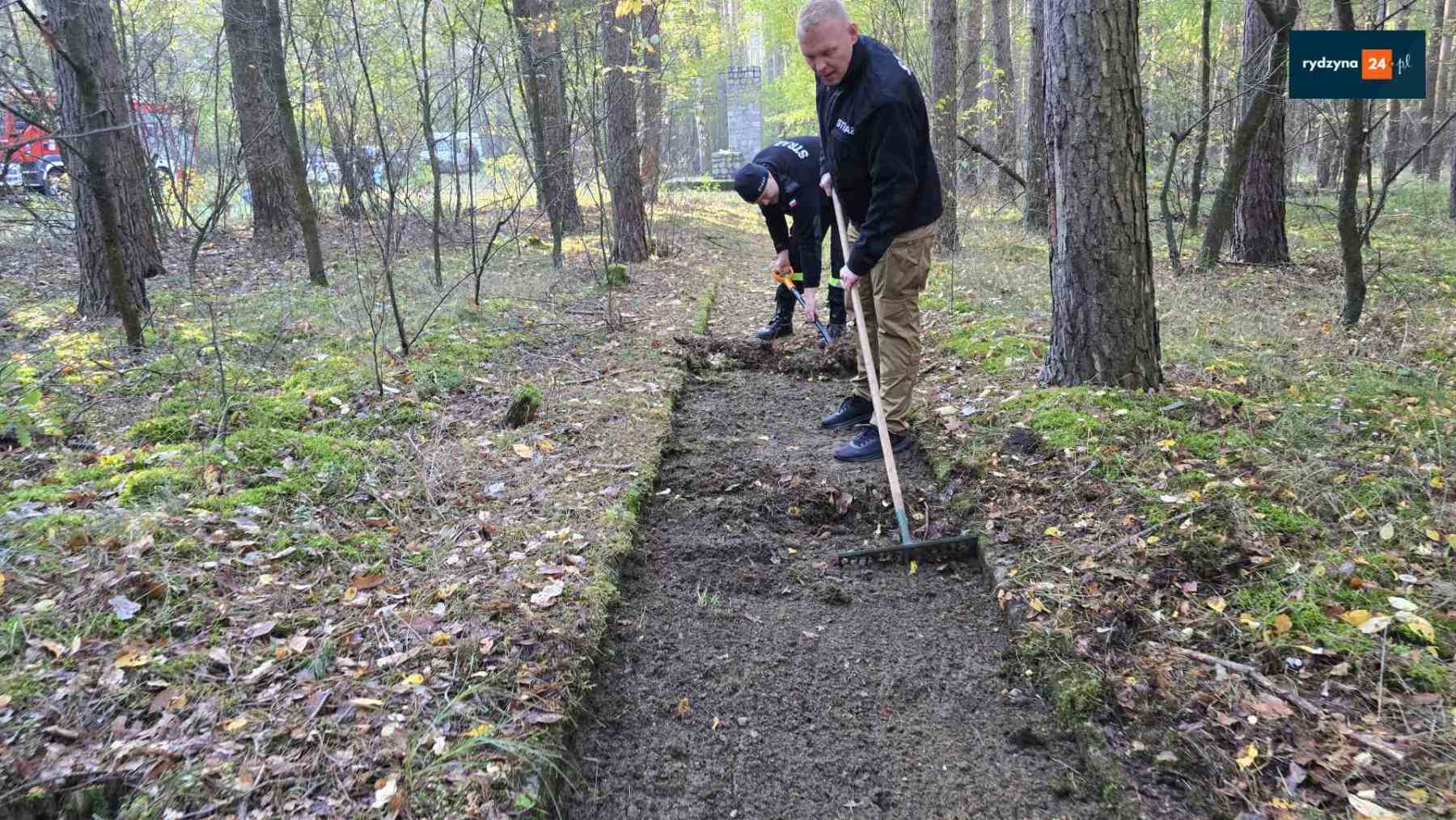Sprzątanie pomnika ofiar niemieckiej zbrodni w lasach pod Rydzyną