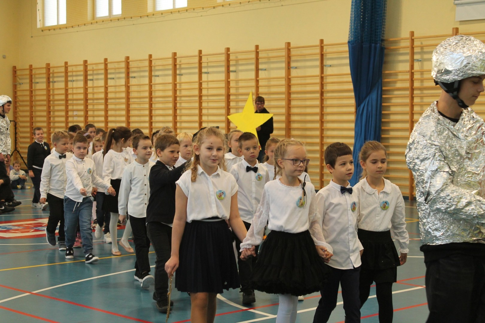 Uroczystość rozpoczęła się częścią artystyczną przygotowaną przez uczniów klas ósmych, którzy zabrali swoich młodszych kolegów i koleżanki w symboliczną kosmiczną podróż. Podczas występu pierwszoklasiści mieli okazję zaprezentować swoje umiejętności i udowodnić, że są w pełni gotowi, by zostać prawdziwymi uczniami.