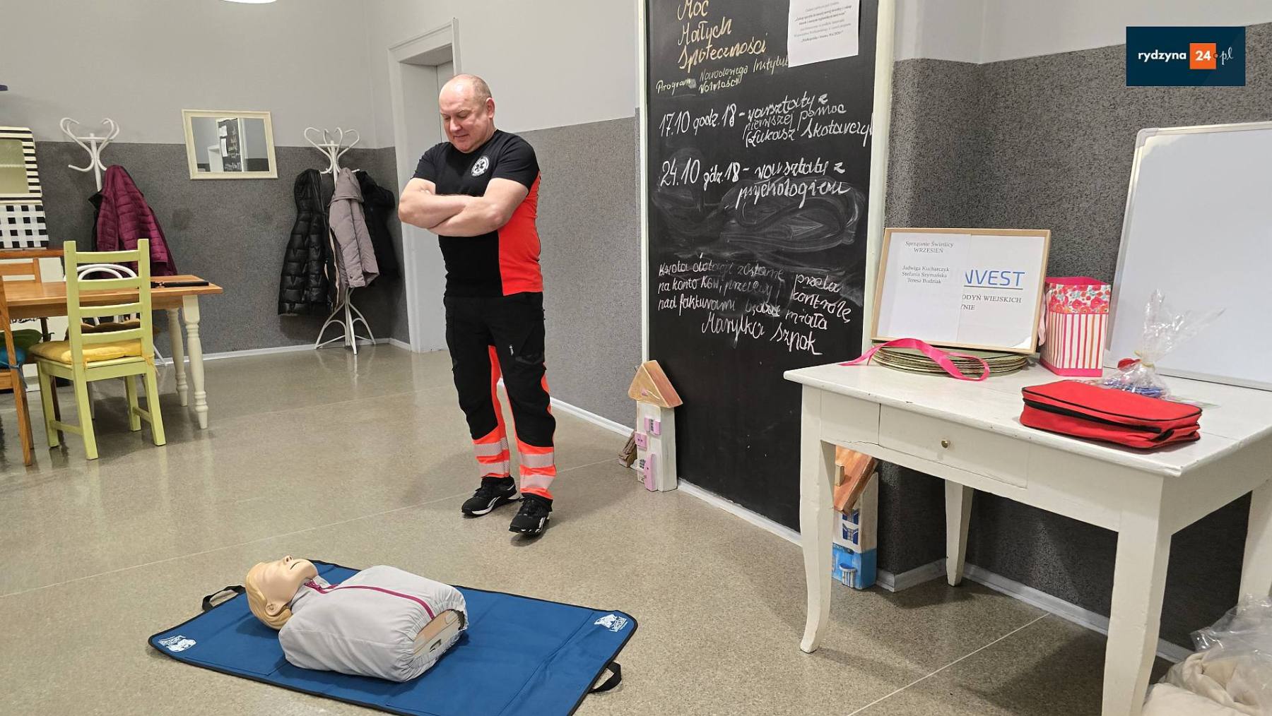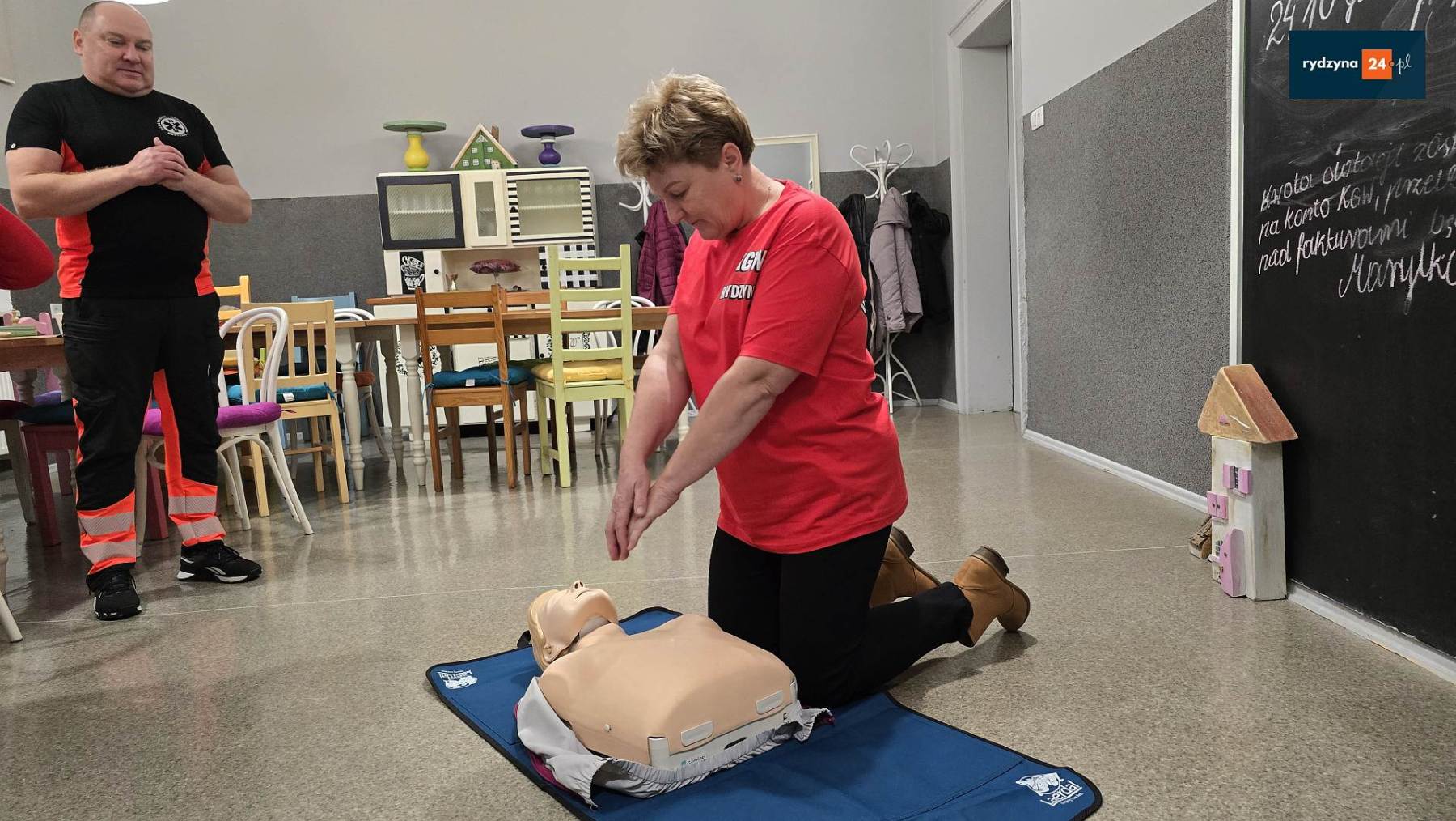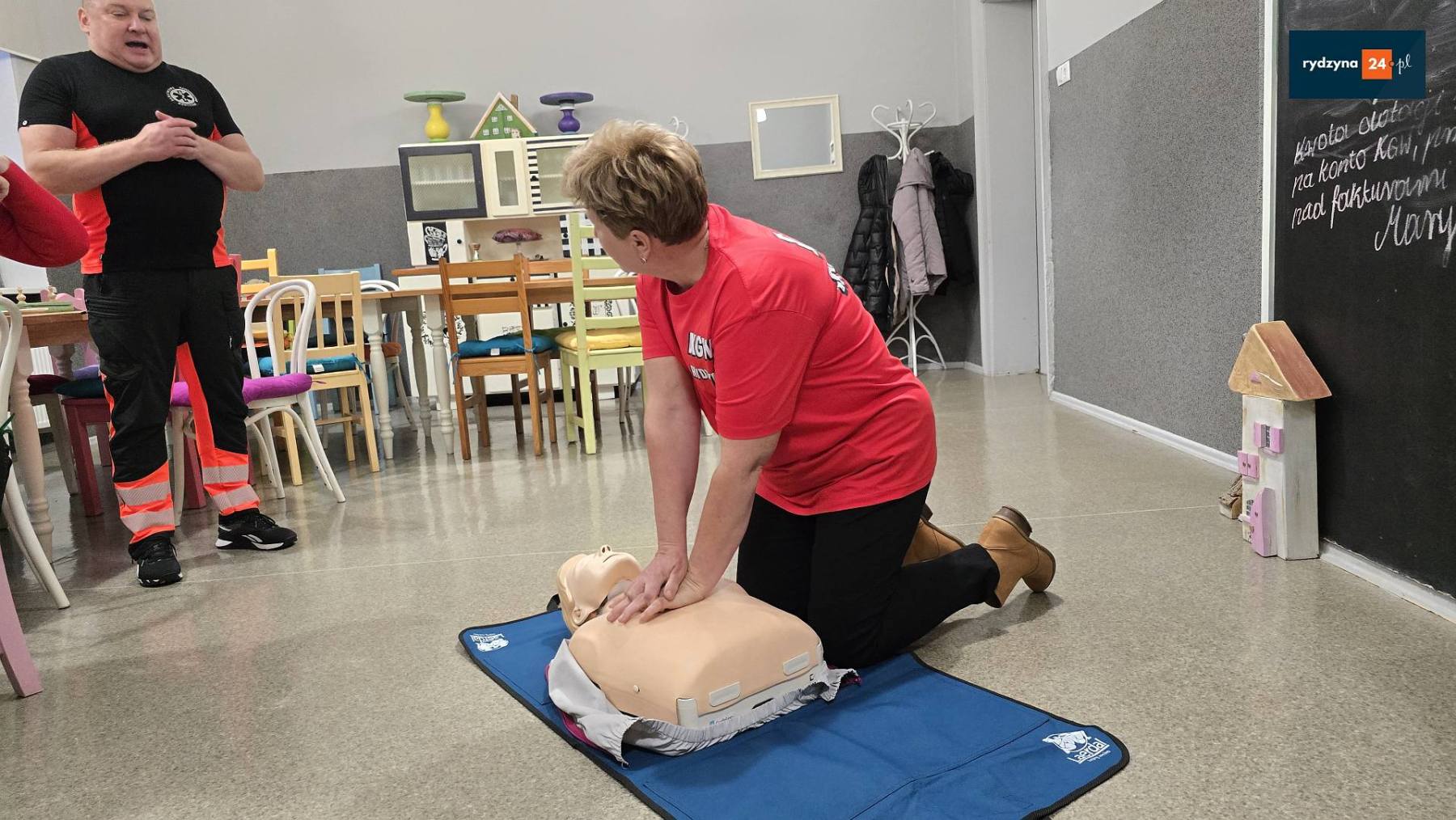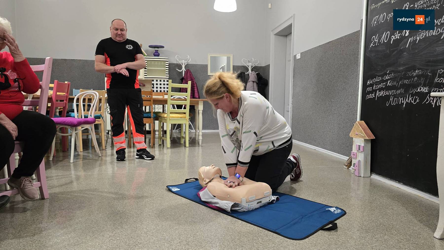 W siedzibie Koła Gospodyń Wiejskich w Rydzynie odbyły się kolejne warsztaty w ramach projektu „Razem w kryzysie – lokalne centrum wsparcia”, realizowanego przez Koło Gospodyń Wiejskich w Rydzynie dzięki dofinansowaniu z Narodowego Instytutu Wolności. Tym razem uczestnicy wzięli udział w rozszerzonym szkoleniu z pierwszej pomocy, które miało na celu praktyczne przygotowanie mieszkańców do reagowania w sytuacjach zagrożenia życia.
