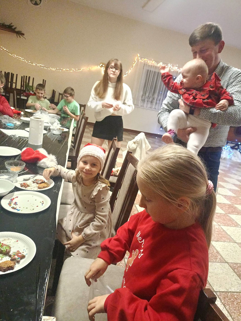 Zorganizowano również wspólne spotkanie przy świątecznym stole, które umożliwiło integrację uczestników i opiekunów w spokojnej, rodzinnej atmosferze.