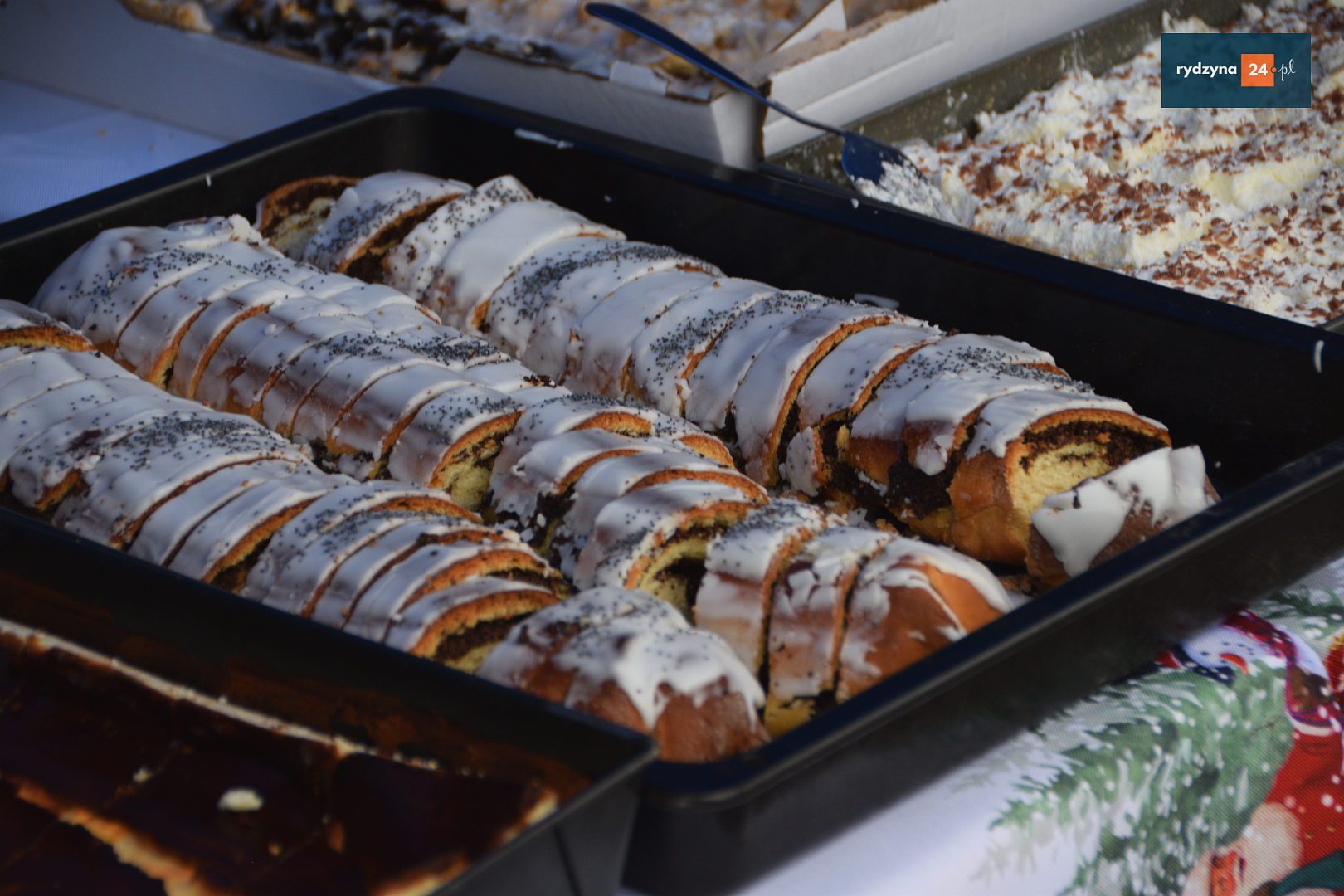 Dużym zainteresowaniem cieszyły się stoiska Kół Gospodyń Wiejskich, które oferowały tradycyjne potrawy świąteczne, wypieki oraz regionalne specjały. Nie zabrakło również wystawców z rękodziełem i świątecznymi produktami, idealnymi na bożonarodzeniowe prezenty. Podczas jarmarku dostępne było także stoisko informacyjne dotyczące Funduszy Europejskich.