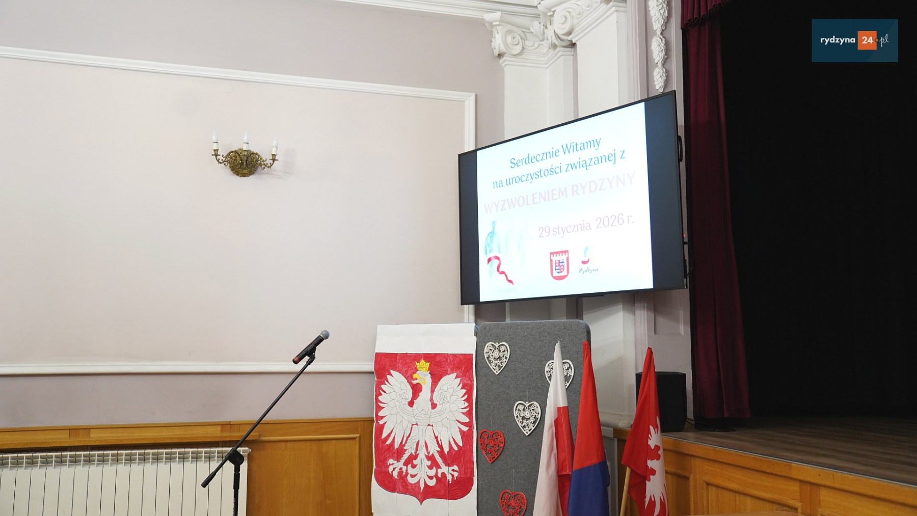 W czwartek, 29 stycznia 2026 roku, w sali widowiskowej Rydzyńskiego Ośrodka Kultury odbyła się uroczystość poświęcona wyzwoleniu Rydzyny. Wydarzenie zostało zorganizowane z inicjatywy Burmistrza Miasta i Gminy Rydzyna oraz Przewodniczącej Samorządu Mieszkańców i miało charakter otwarty – wstęp był bezpłatny.