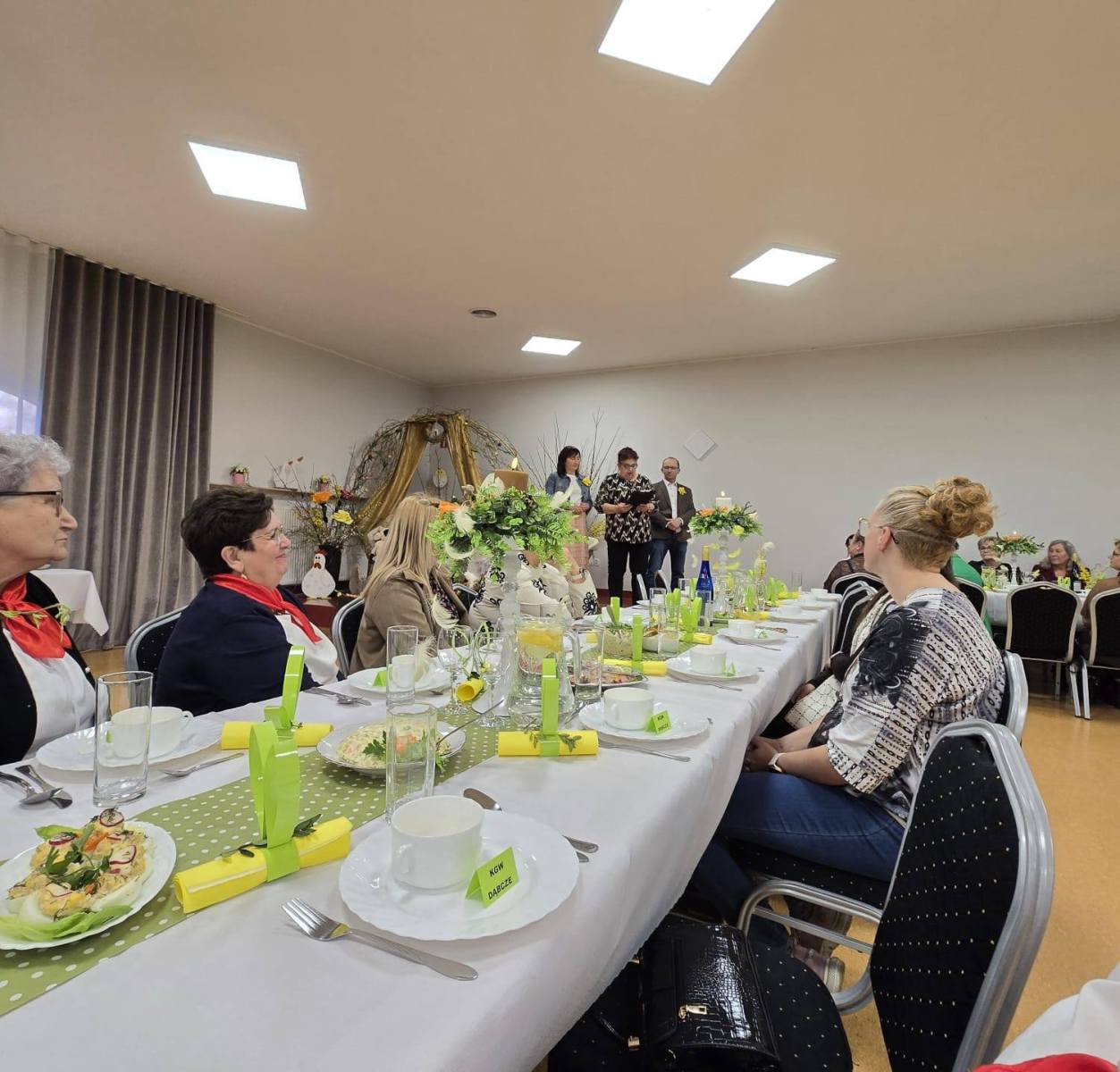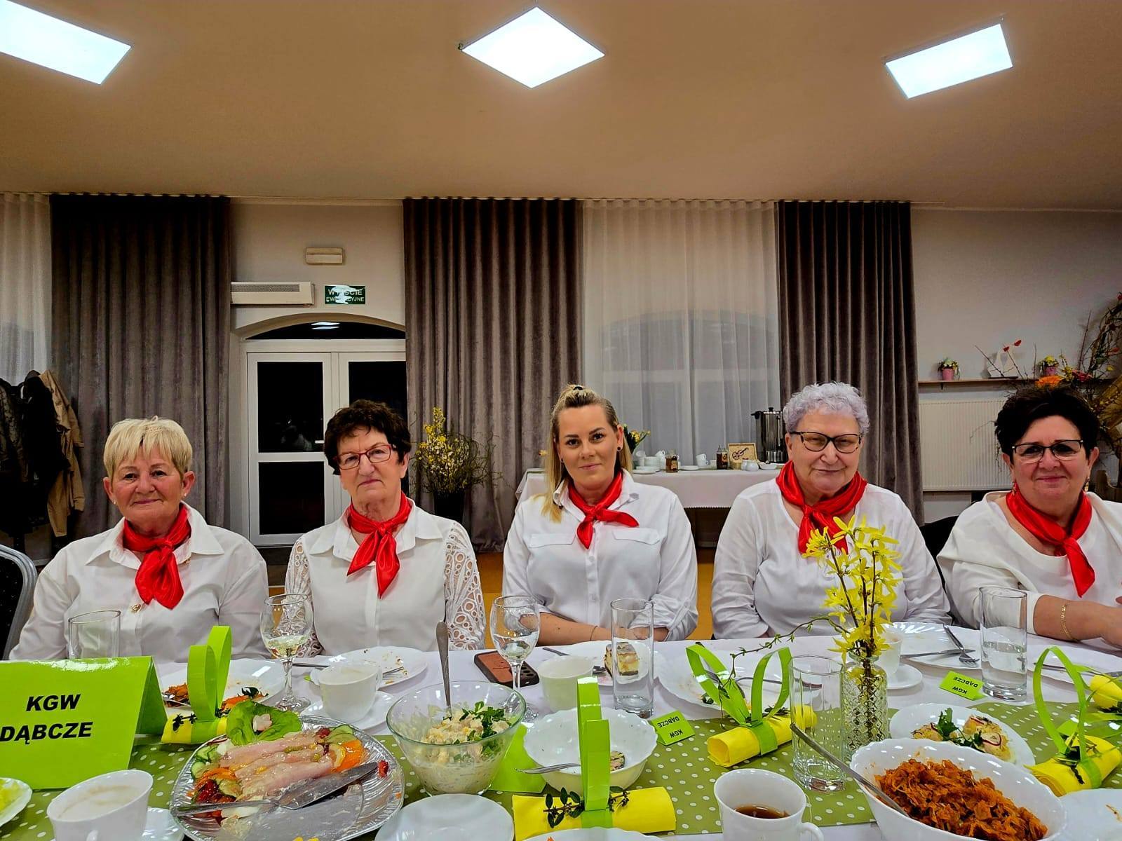 Na stołach pojawiły się tradycyjne potrawy wielkanocne, przygotowane przez członkinie KGW. Starannie przyrządzone dania podkreślały świąteczny charakter spotkania i były wyrazem kulinarnego zaangażowania oraz dbałości o regionalne zwyczaje.