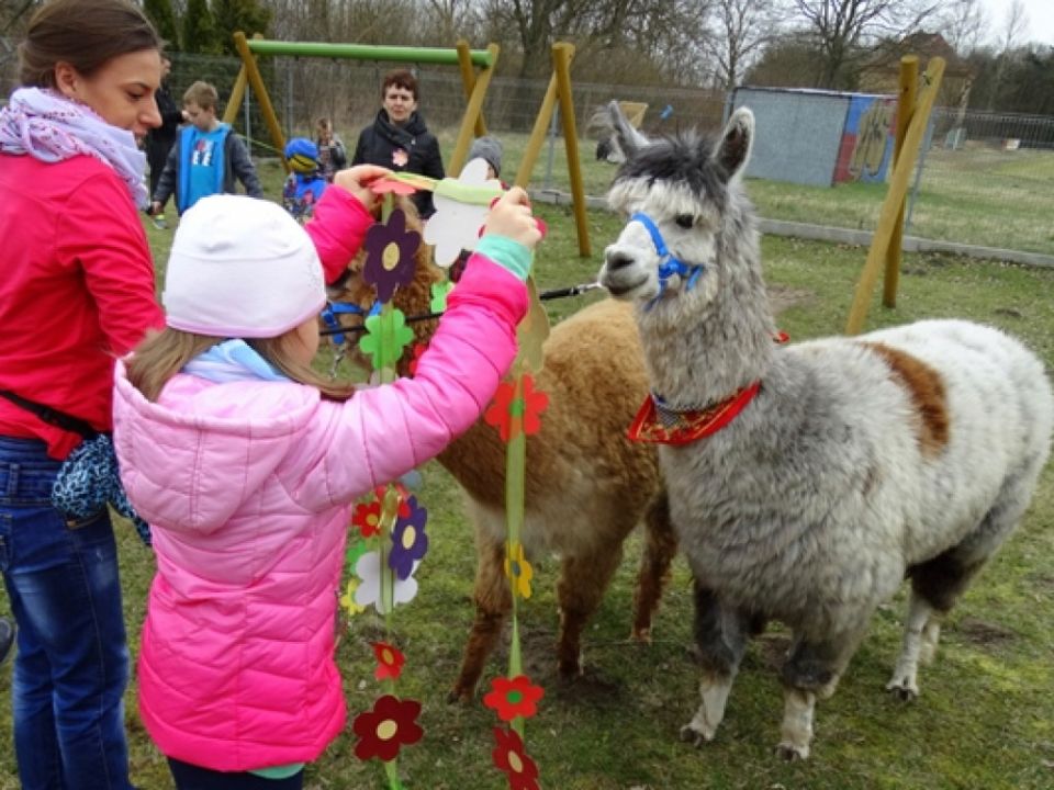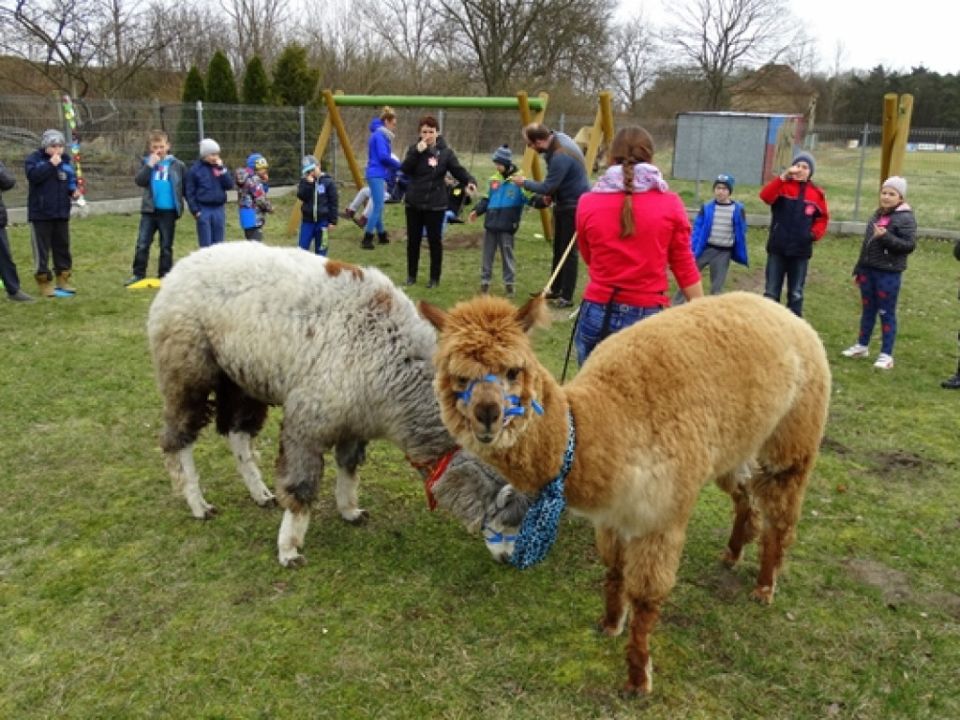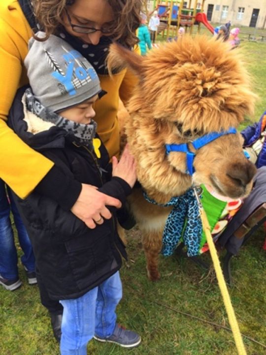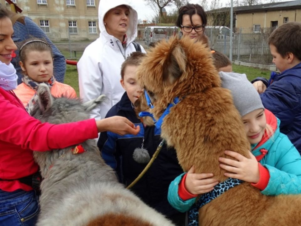 Atrakcją tego dnia były odwiedziny znanym ich już czworonożnych przyjaciół, alpak Versace i Companiero.