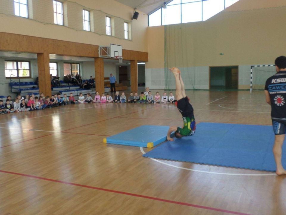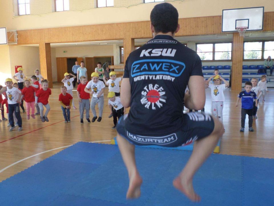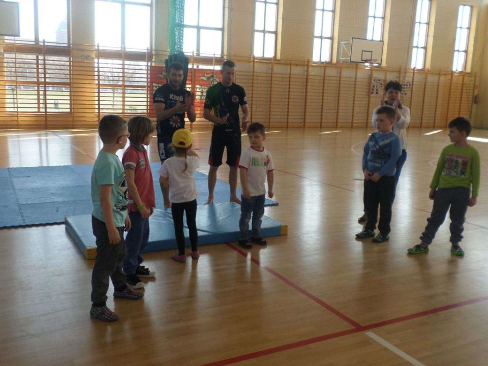 31 marca podopieczni przedszkola z Kłody i dwie starsze grupy z Rydzyny udali się do Hali Sportowej na spotkanie z zawodnikiem MMA Mariuszem Mazurem.