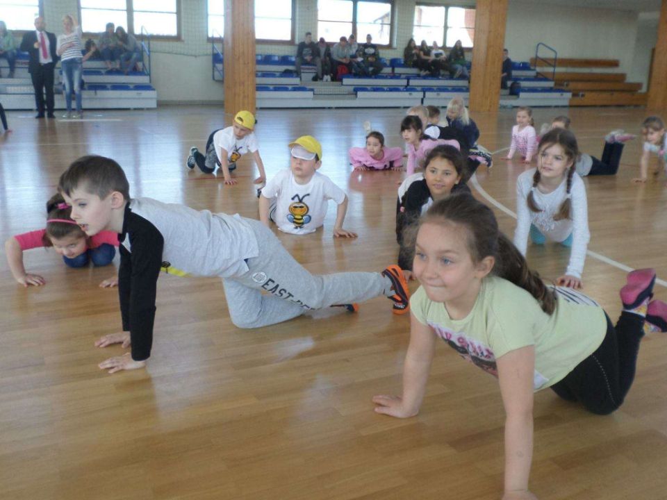 Na zakończenie wszyscy zostali zaproszeni do wspólnych ćwiczeń. Były pompki, pajacyki, przysiady, szybki bieg w miejscu i inne ćwiczenia rozgrzewające.