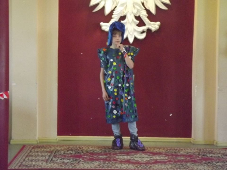 II v-ce Mister Eko – Maciej Woźniak i jego strój „Miejski kolaż” (chodzi o technikę plastyczną)