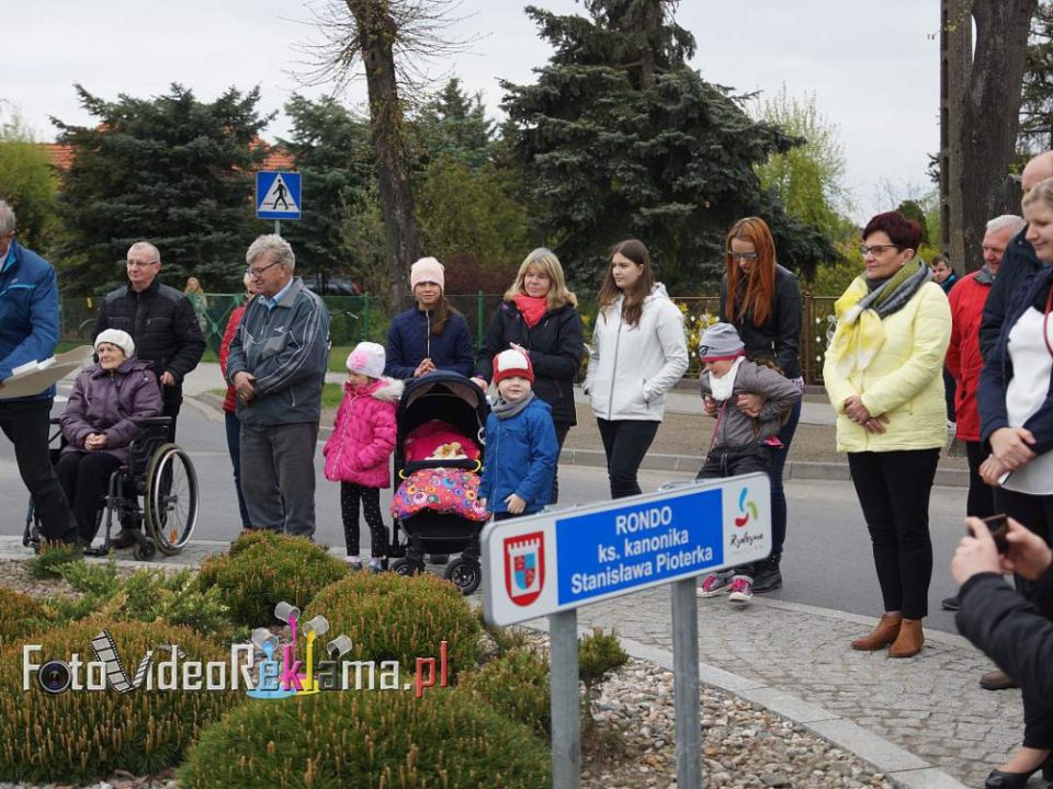 Podczas uroczystości odczytany został tekst uchwały, dzięki której rondo może nosić imię zasłużonego dla Rydzyny kanonika. Odsłonięto również tablicę pamiątkową z okresem proboszczowania ks. Pioterka.