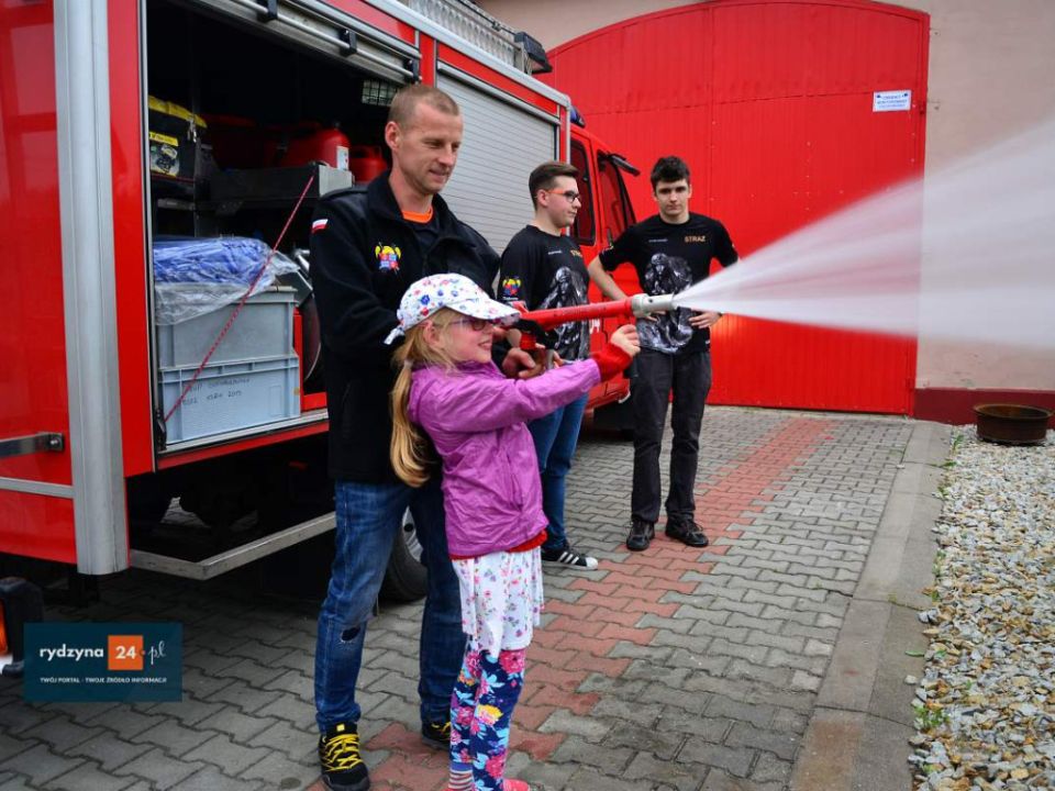 Impreza była świetną okazją do integracji rodzin oraz najmłodszych, którzy mogli samodzielnie sprawdzić, jak działają urządzenia strażackie.