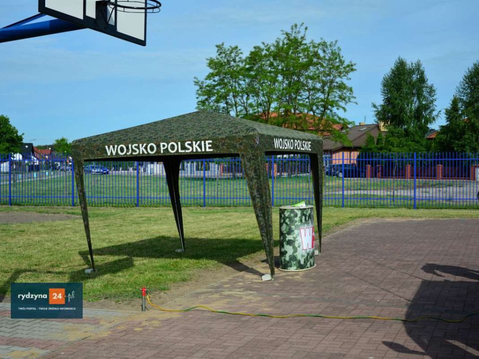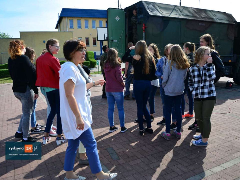 Na boisku gimnazjum podczas akcji pojawiło się wojsko. Uczniowie mogli zapoznać się ze sprzętem wojskowym oraz uzyskać informacje, jak zostać żołnierzem.