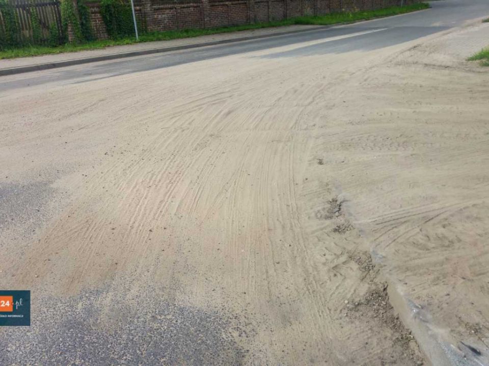 W rozmowie z nimi udało nam się ustalić, że jeszcze dwa tygodnie temu na bieżąco droga była sprzątana. Przejechanie rowerem czy motorowerem przez ten piach jest niemal niemożliwe.