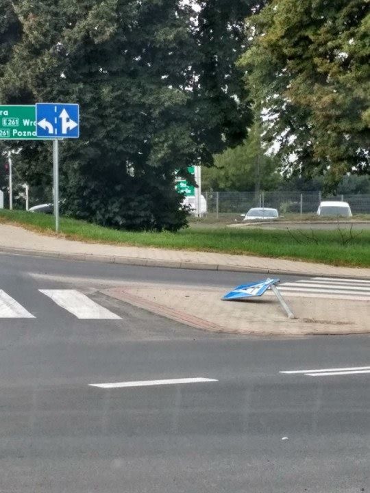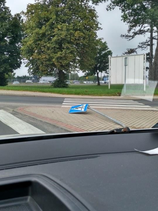 16 lipca znak drogowy, znajdujący się na wysepce na skrzyżowaniu prowadzącym z Kłody do Rydzyny, został przewrócony.