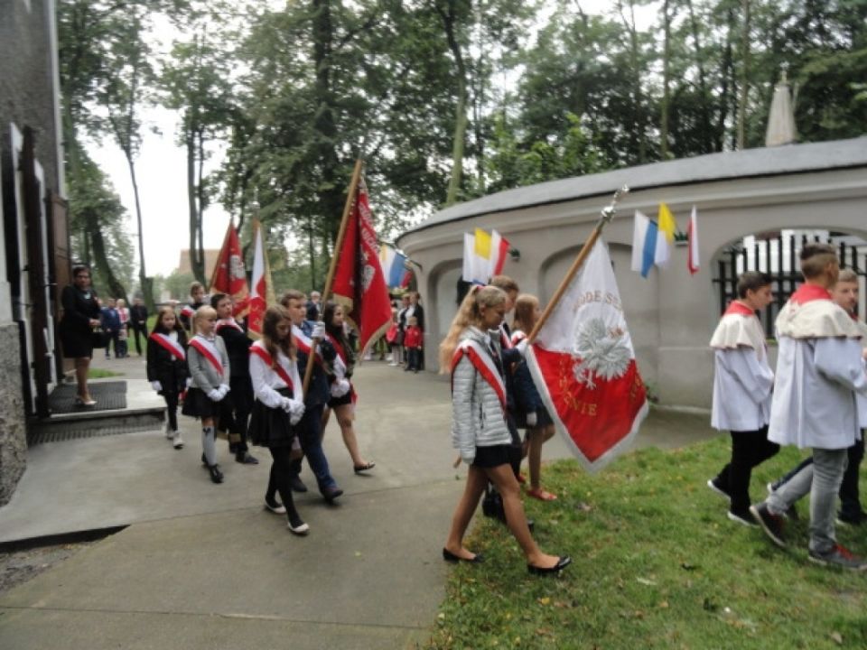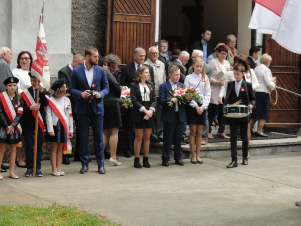 Następnie złożona została wiązanka kwiatów przy Tablicy Pamiątkowej znajdującej się przy Kościele. Na część artystyczną uczniowie wraz z opiekunami udali się do pobliskiej sali wiejskiej, gdzie ich koledzy ze Szkoły Podstawowej w Tursku zaprezentowali okolicznościową akademię, a na zakończenie odtańczyli poloneza.