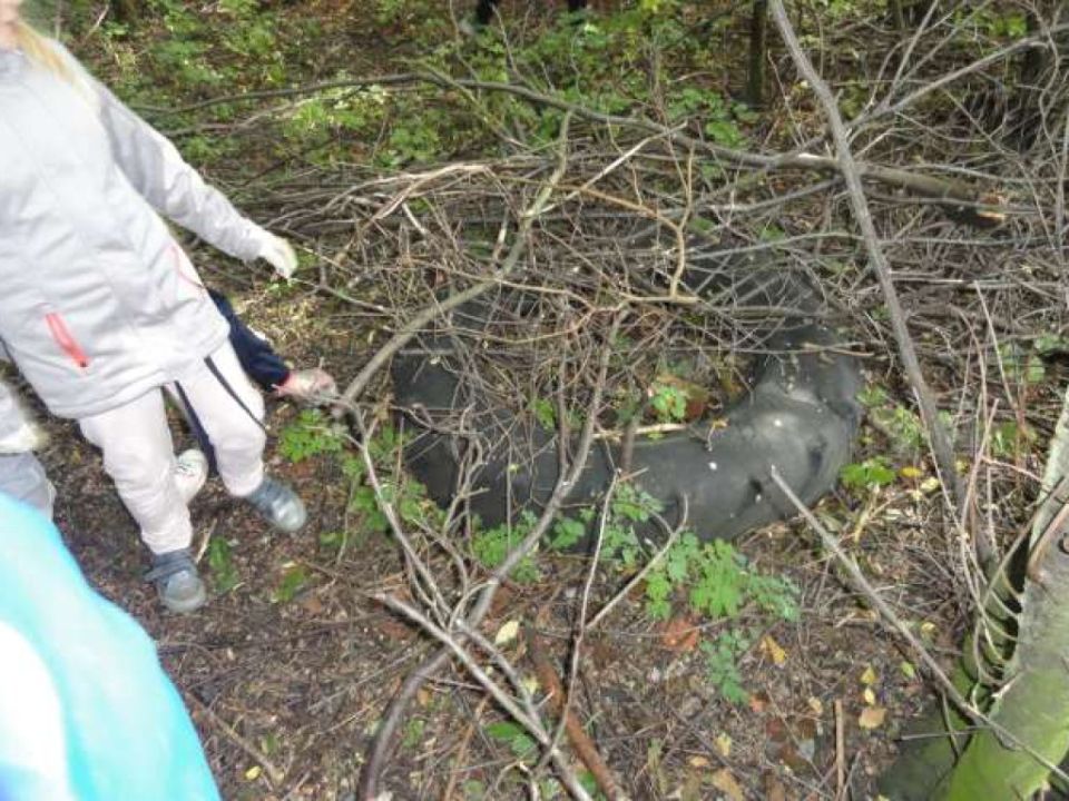 Klasa IV B trafiła na „niezłe dzikie śmieciowisko”, w którym oprócz zwyczajnych śmieci typu: kawałki glazury łazienkowej czy opony traktorowej znaleziono kawałki obudowy telewizora i mnóstwo szklanych butelek po różnych napojach.