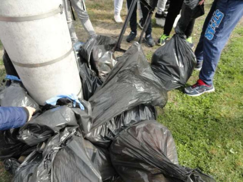 Każda klasa sprzątała wyznaczony teren, wrzucając do worków posegregowane śmieci.