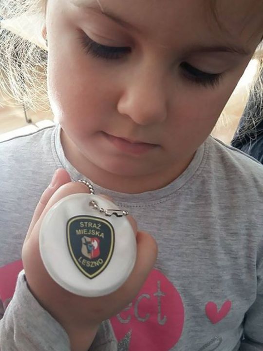 Podczas zajęć dzieci dowiedziały się, czym zajmuje się straż miejska, jak wyglądają oznaczenia na mundurze i czapce oraz jakie zachowania mogą zagrażać zdrowiu i życiu dzieci zarówno na drodze, jak i w domu.