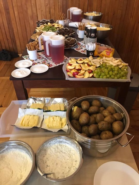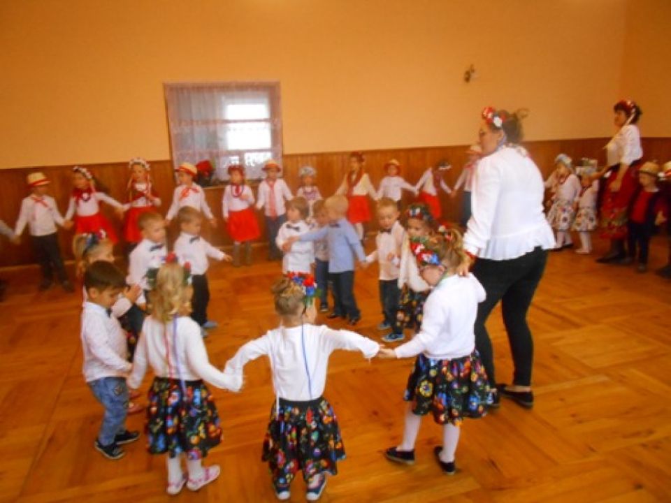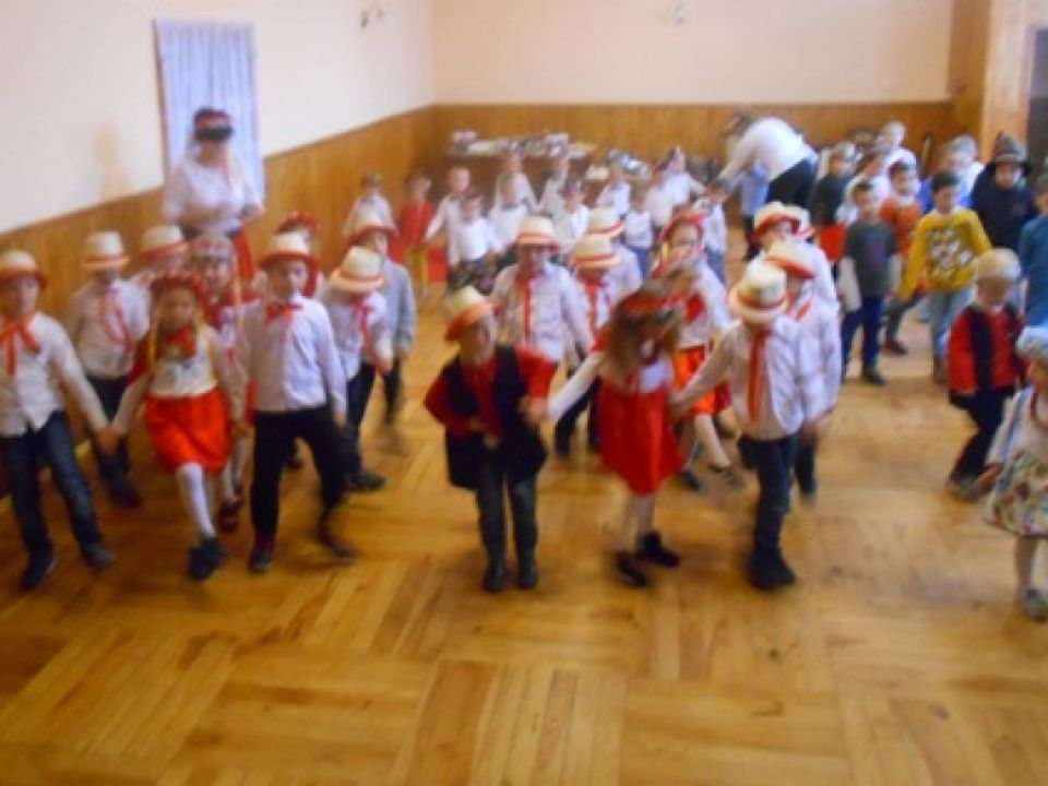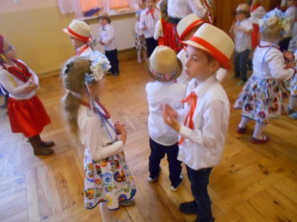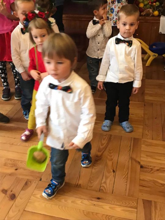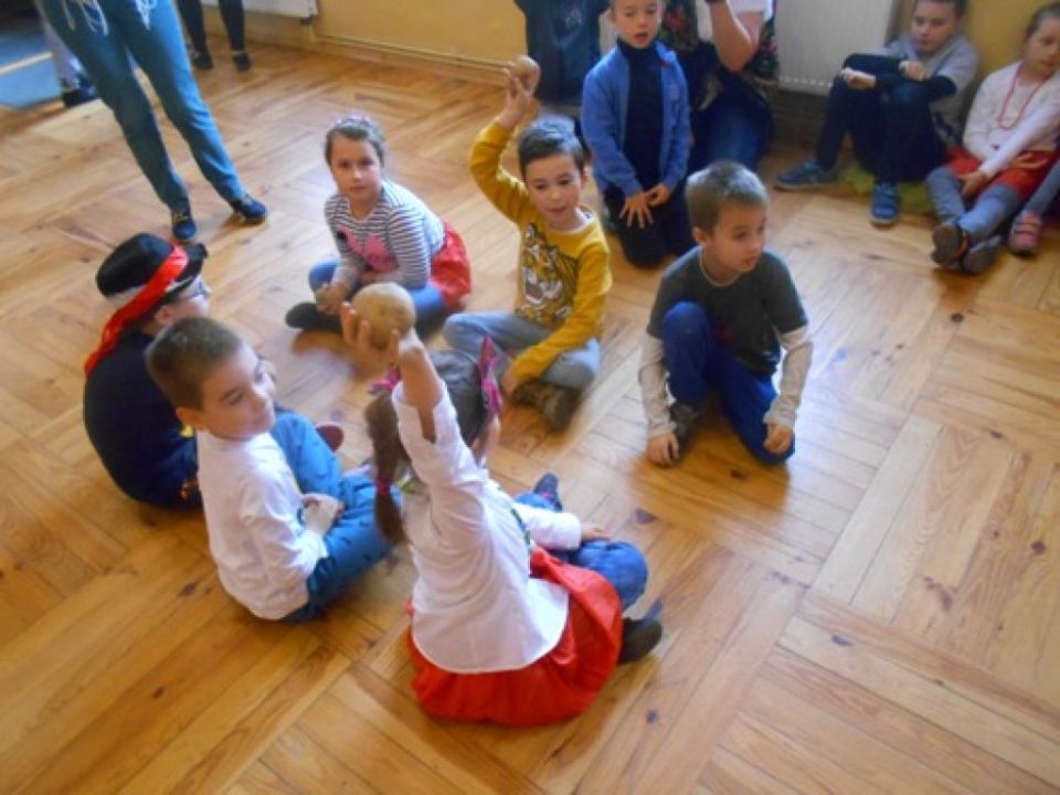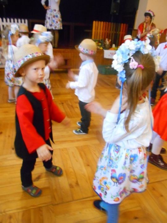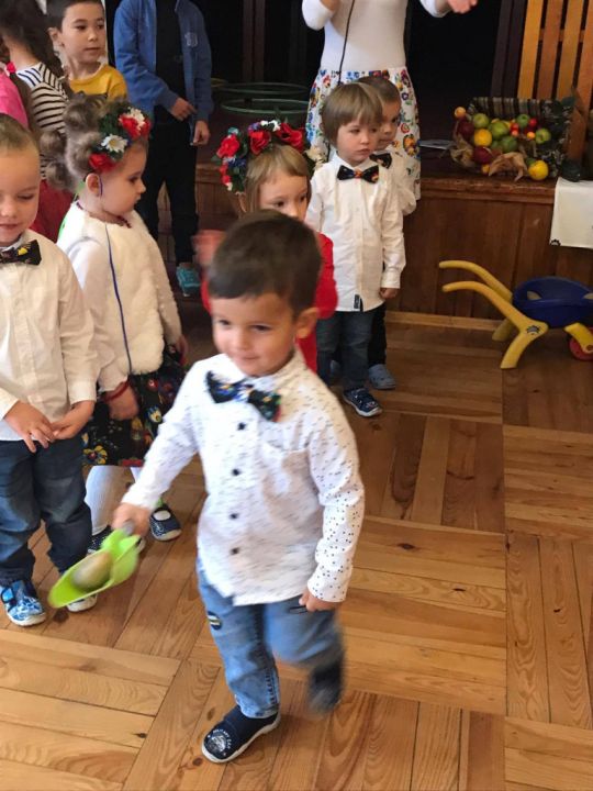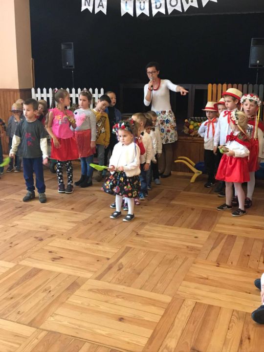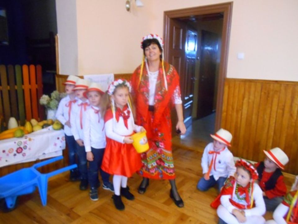 Dzieci dowiedziały się, jakie potrawy przygotowuje się z ziemniaków, poznały gwarowe nazwy ziemniaka. Wzięły udział w konkursach sprawnościowych, między innymi w: sadzeniu ziemniaków, zbieraniu w wiaderka, sztafecie z ziemniakiem na łopatce czy wyścigach taczek wypełnionych pyrkami. Emocjonujące konkurencje sprawnościowe przeplatane były tańcami i zabawami ludowymi. Pani Maria od rana gotowała pyry w mundurkach i przygotowała dla nas pyszną gzikę, którą delektowaliśmy się na zakończenie spotkania, a po zmaganiach apetyt dzieciom dopisywał.