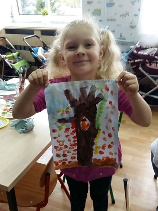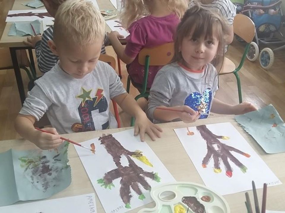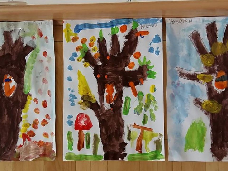 Dnia 10 października Święto Drzewa obchodziły dzieci z gr. Sowy. Przedszkolacy poznały kilka rodzajów drzew, w tym piękny i dostojny dąb na którym rosną żołędzie. Zabawy w tym dniu toczyły się wokół drzew oraz jesiennych kolorów – dzieci utrwalały kolory jesieni takie jak – żółty, czerwony, pomarańczowy i zielony. Każde dziecko otrzymało kolor i zabawa polegała na ułożeniu zdania, np. Mam kolor czerwony – czerwony jest pomidor, mam kolor pomarańczowy – pomarańczowe jest pomarańczko, mam kolor zielony – zielona jest trawa, itd.