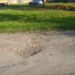 Dziurawe pobocze i droga w Tarnowej Łące