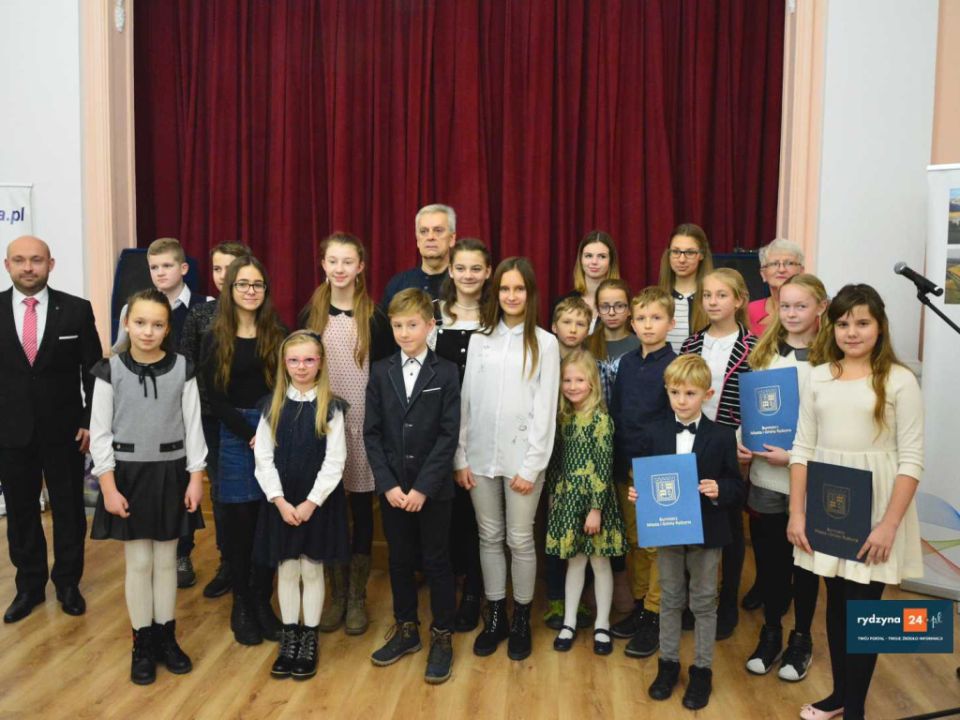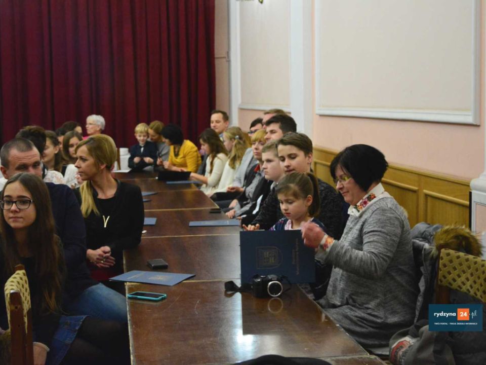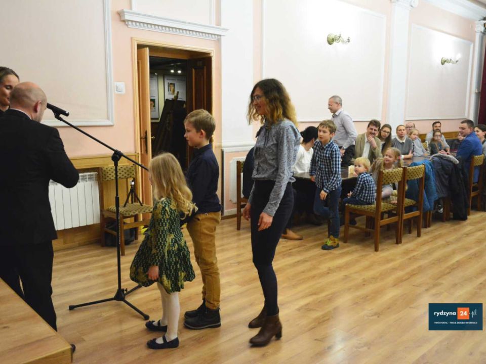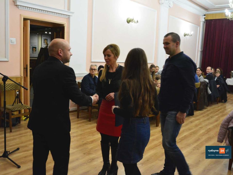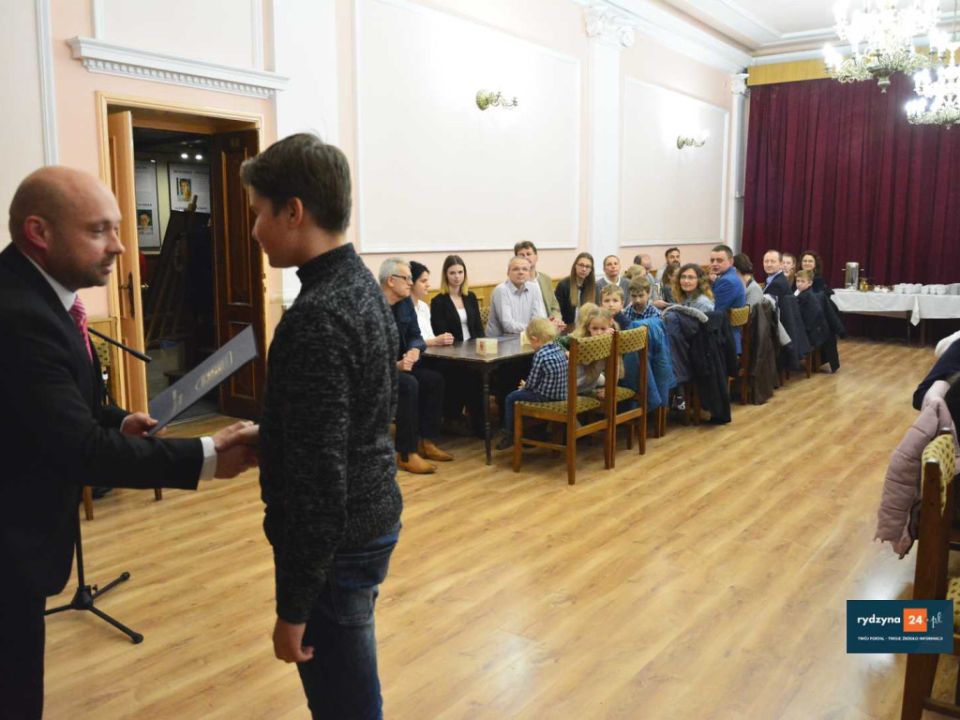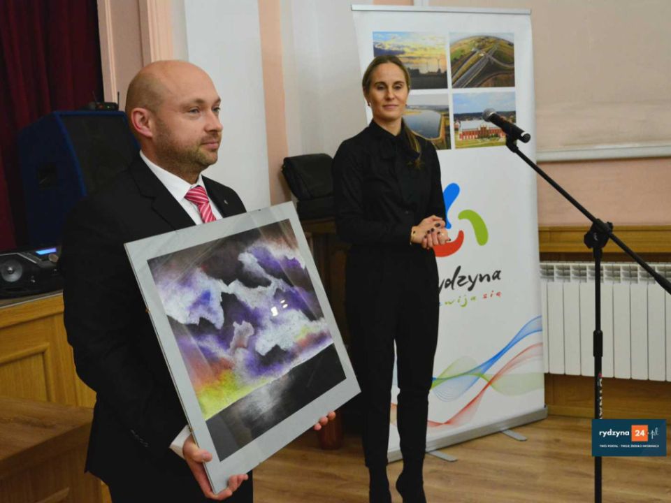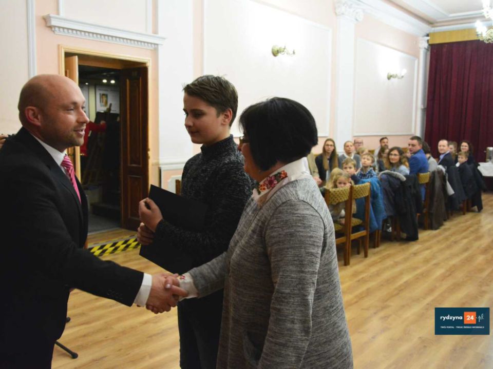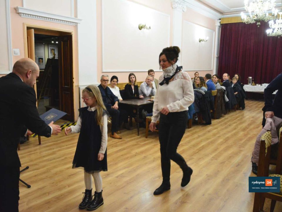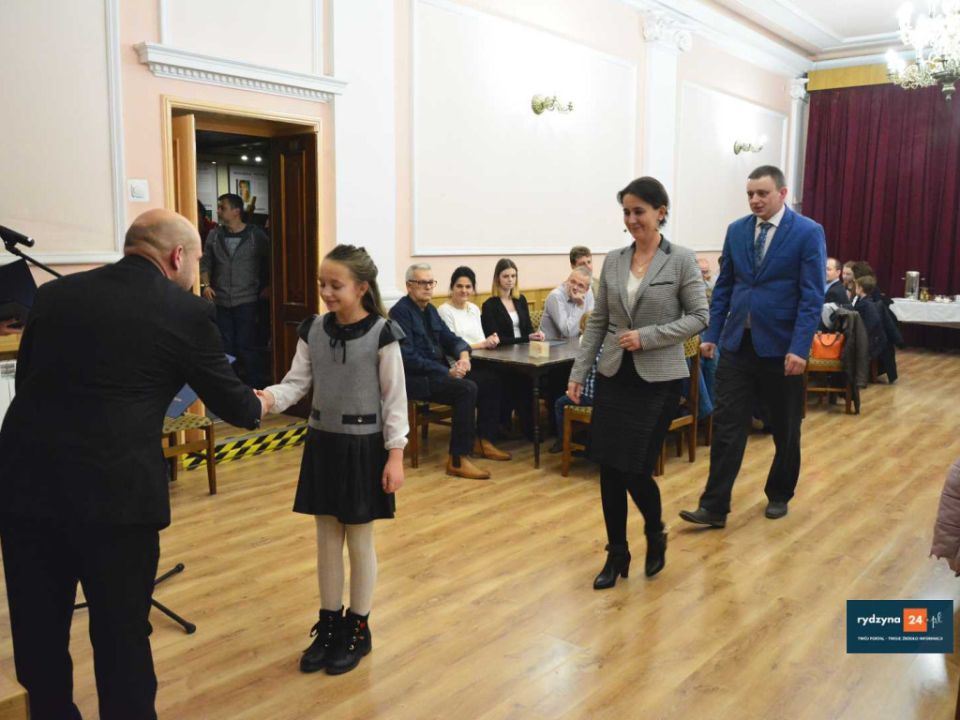 W sali Rydzyńskiego Ośrodka Kultury Burmistrz MiG Rydzyna wręczył podziękowania laureatom ogólnopolskich konkursów plastycznych.