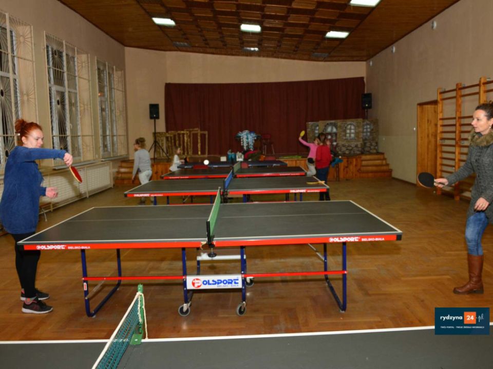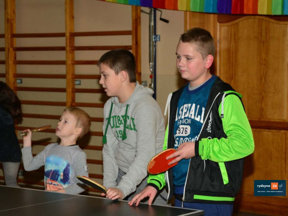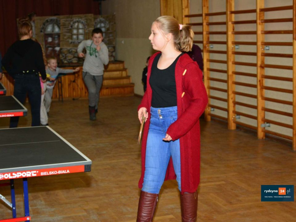 Podczas czekania na smakołyki był czas na zabawę. Dzieci z sołtysem i burmistrzem grały w tenisa stołowego i oglądały bajki.