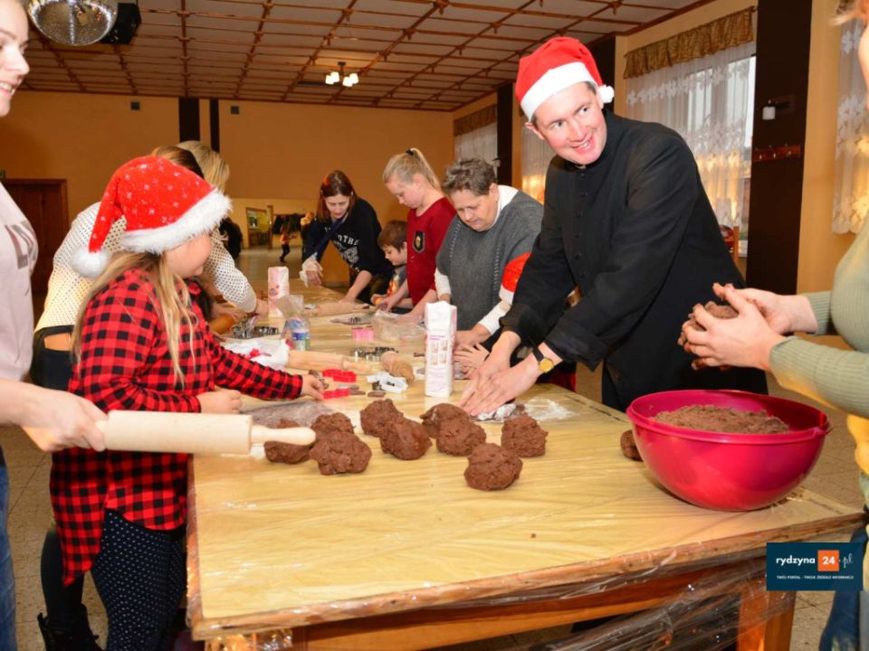 Własnoręcznie wyrabiali i piekli pierniki. W akcję włączył się proboszcz z Kaczkowa, który chętnie pomógł przy pracy.