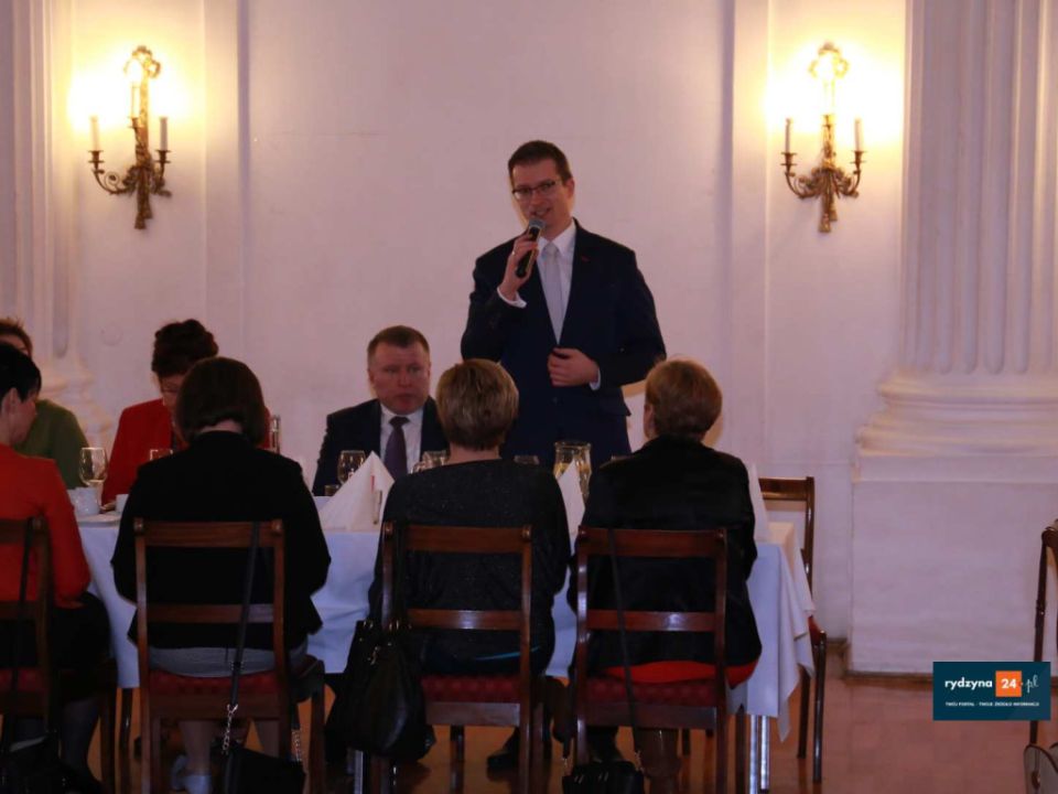 Składali podziękowania i życzenia zebranym paniom. Spotkanie umiliły rydzyńskie gimnazjalistki śpiewające kolędy.