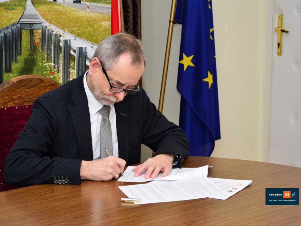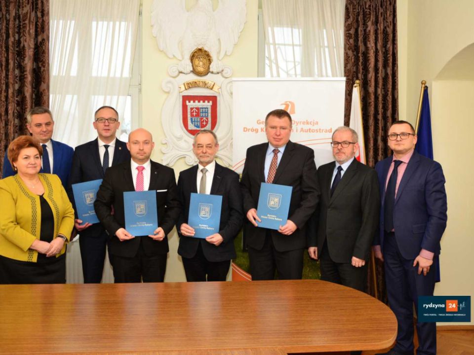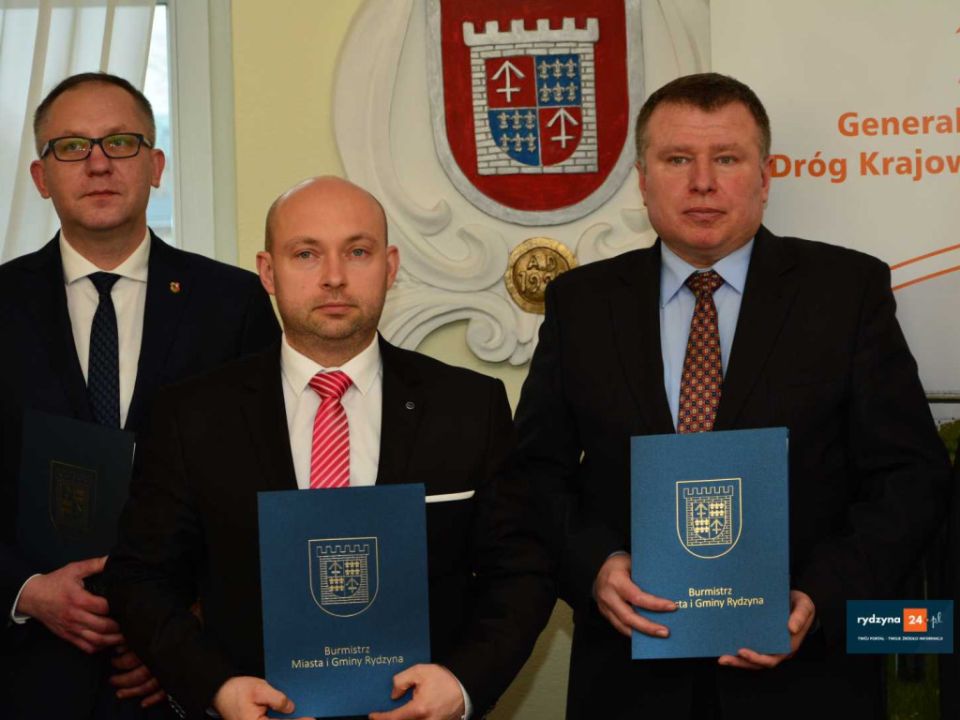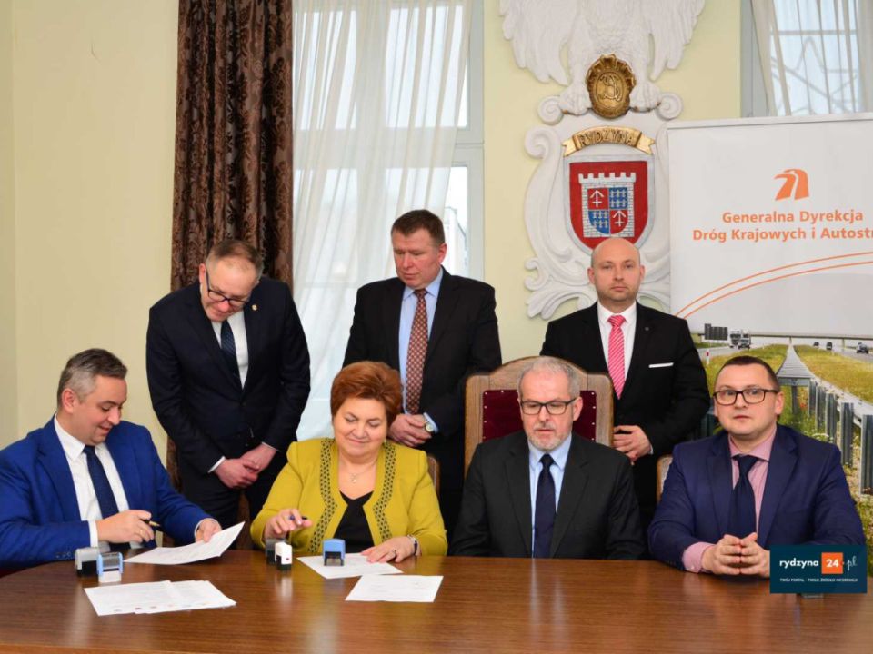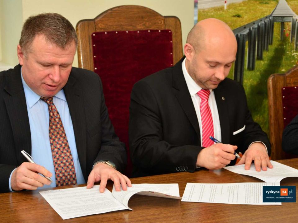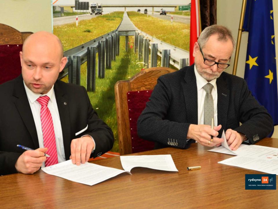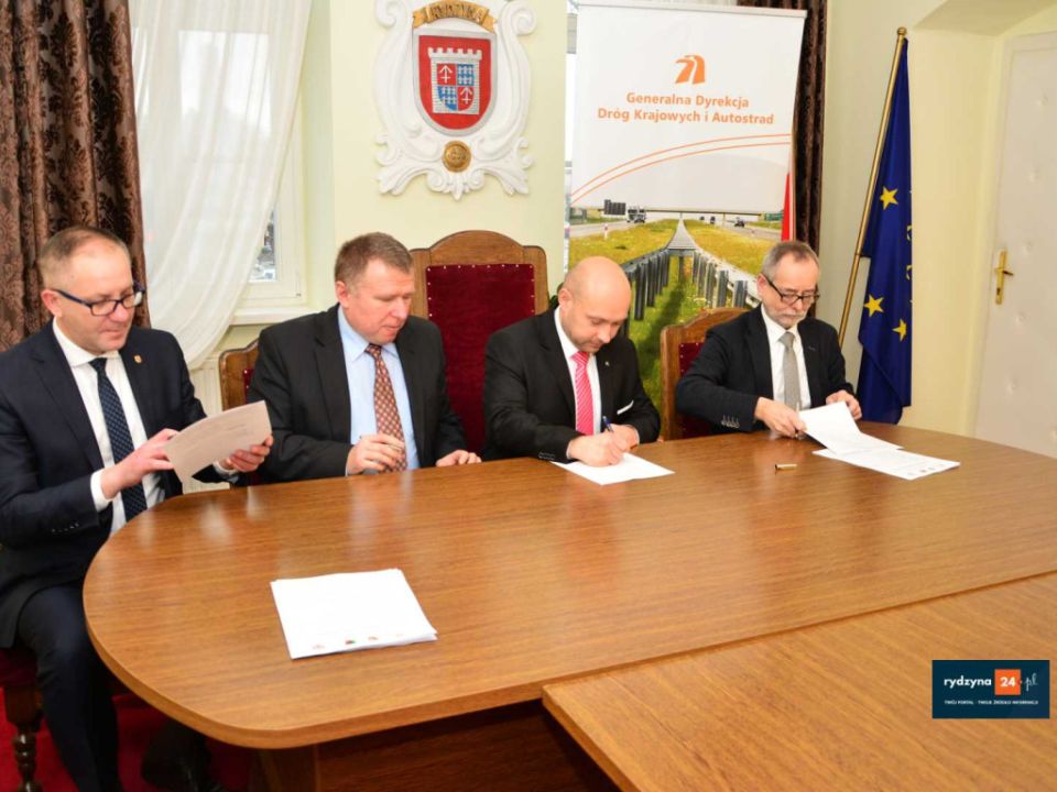 Dzisiaj w Urzędzie Miasta i Gminy Rydzyna starosta leszczyński Jarosław Wawrzyniak, członek zarządu powiatu Grzegorz Brzeskot, prezydent miasta Leszna Łukasz Borowiak, burmistrz MiG Rydzyna Kornel Malcherek oraz zastępca dyrektora oddziału GDDKiA w Poznaniu Tadeusz Łuka podpisali porozumienie w sprawie wspólnej realizacji budowy ścieżki rowerowej wzdłuż drogi krajowej nr. 5 na odcinku za drogą powiatowa do Dąbcza do drogi powiatowej do Rydzyny.