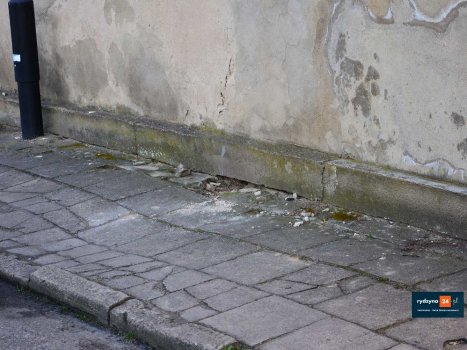 Drugi budynek jest w opłakanym stanie. Odpadający tynk opada na chodnik, a oberwane rynny stanowią zagrożenie dla przechodniów. Zapadnięty dach grozi zawaleniem, a biorąc pod uwagę, że domy nr 24a i 24b są połączone – może dojść do tragedii.