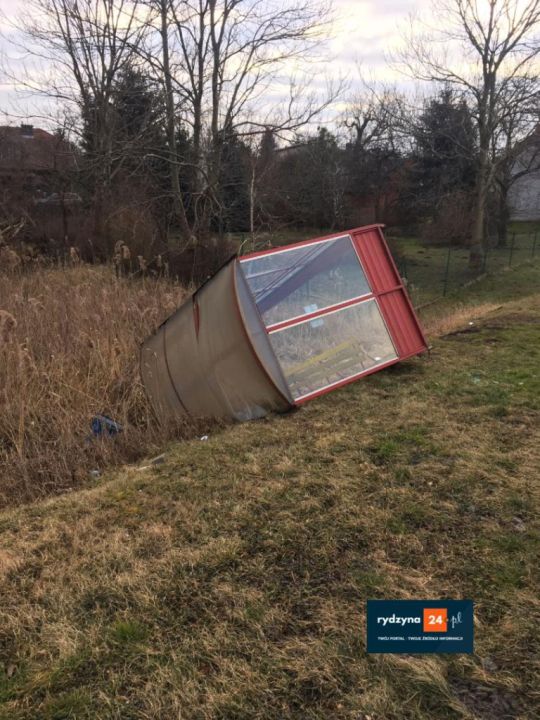 W sobotę późnym wieczorem (po 22.00) przystanek, znajdujący się naprzeciwko Kowolki, wylądował w rowie.