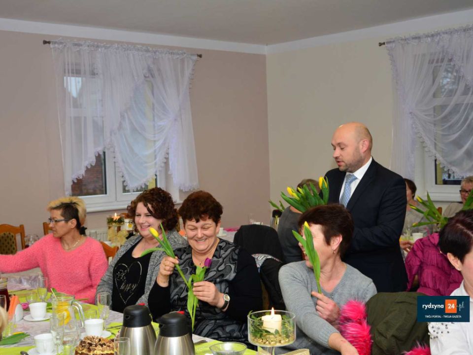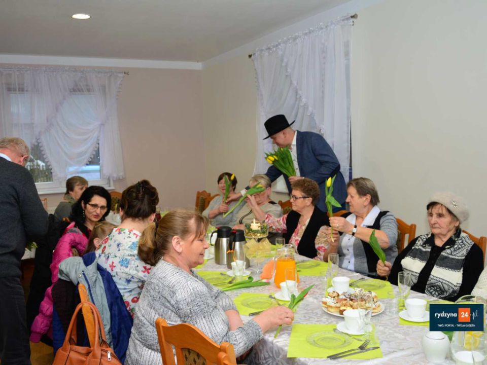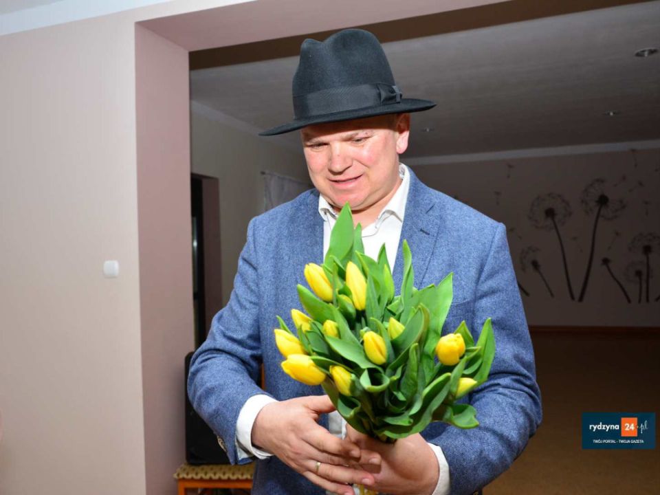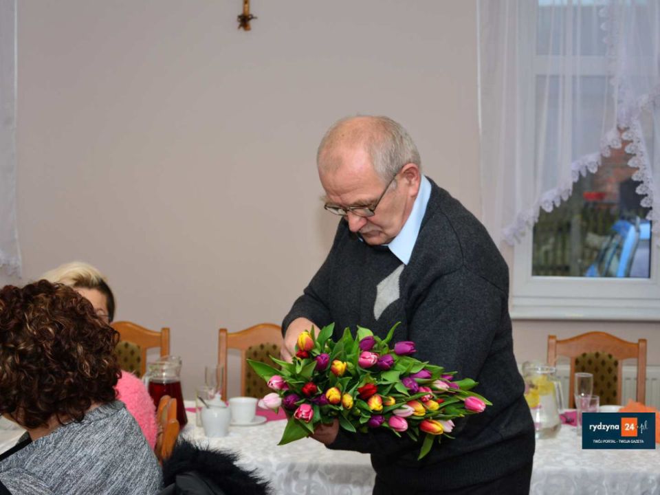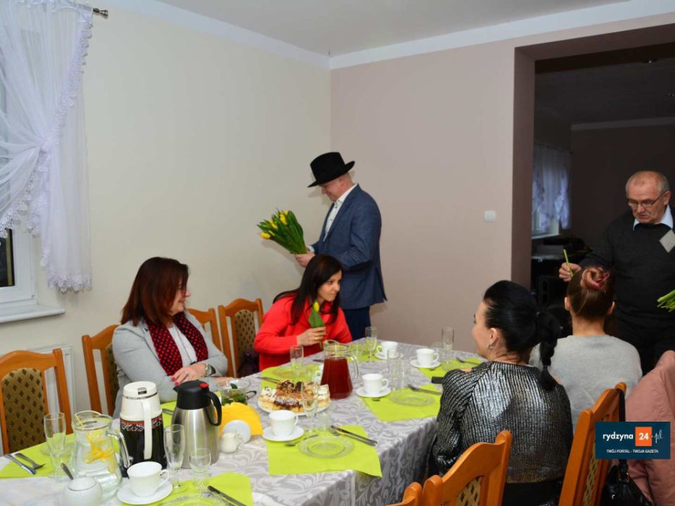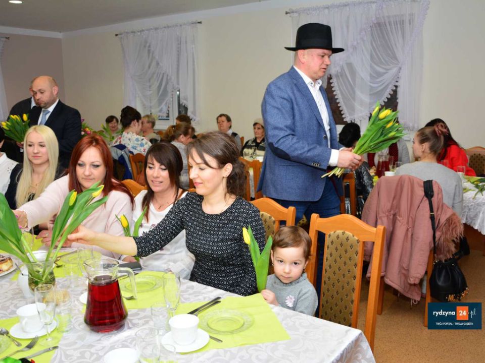 Przybyli goście radny Marcin Urbanowicz, burmistrz Kornel Malcherek oraz p. Jan Florczak wręczyli wszystkim kobietom po symbolicznym tulipanie.