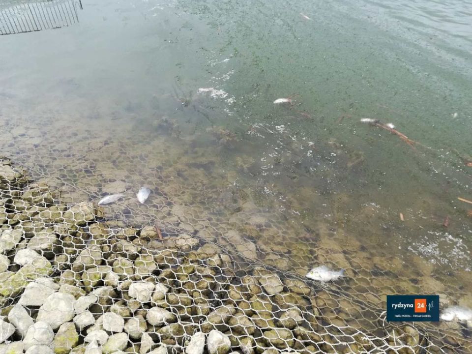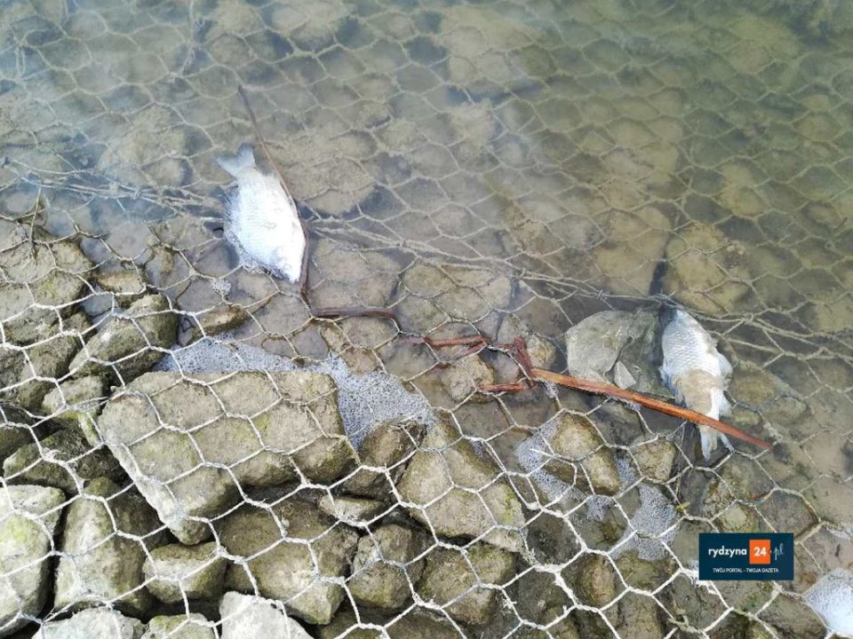 W zbiorniku Rydzyna w Dąbczu można zauważyć sporą ilość śniętych ryb przy brzegu.