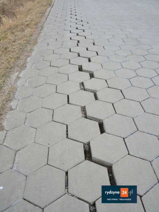Jak widać za załączonych zdjęciach, droga się rozjechała, przerwy miedzy kostkami maja po kilka centymetrów i są na odcinku kilkudziesięciu metrów. Jadąc rowerem można łatwo wpaść w szczelinę. Może skutkować to upadkiem i urazem oraz/lub uszkodzeniem pojazdu.