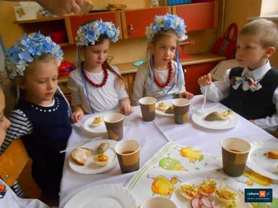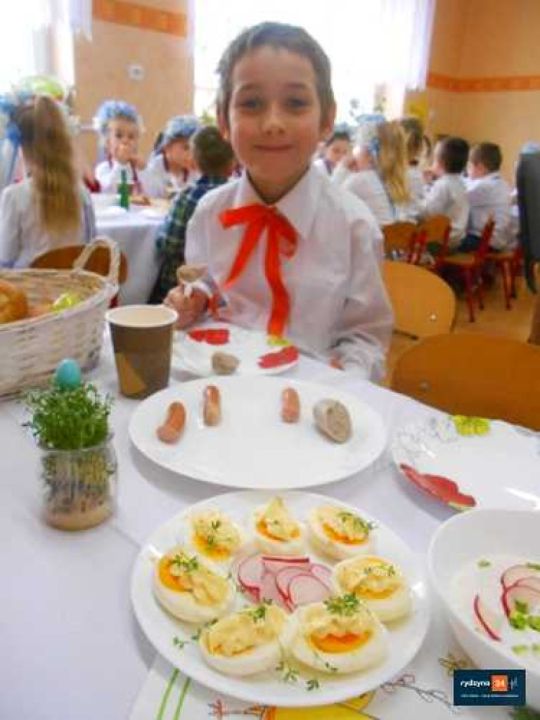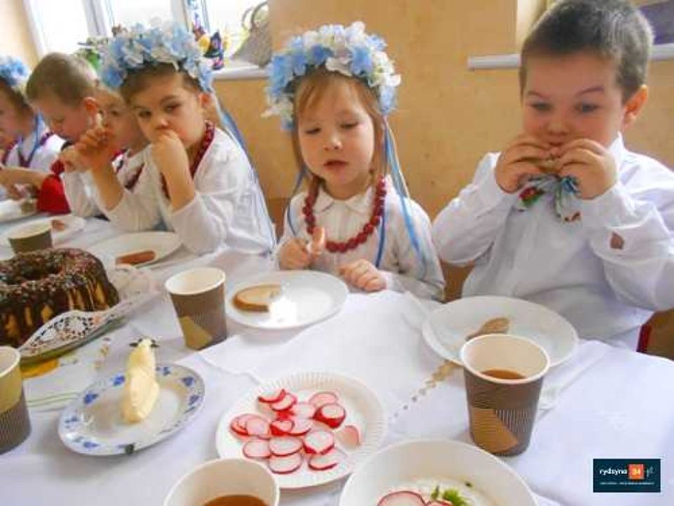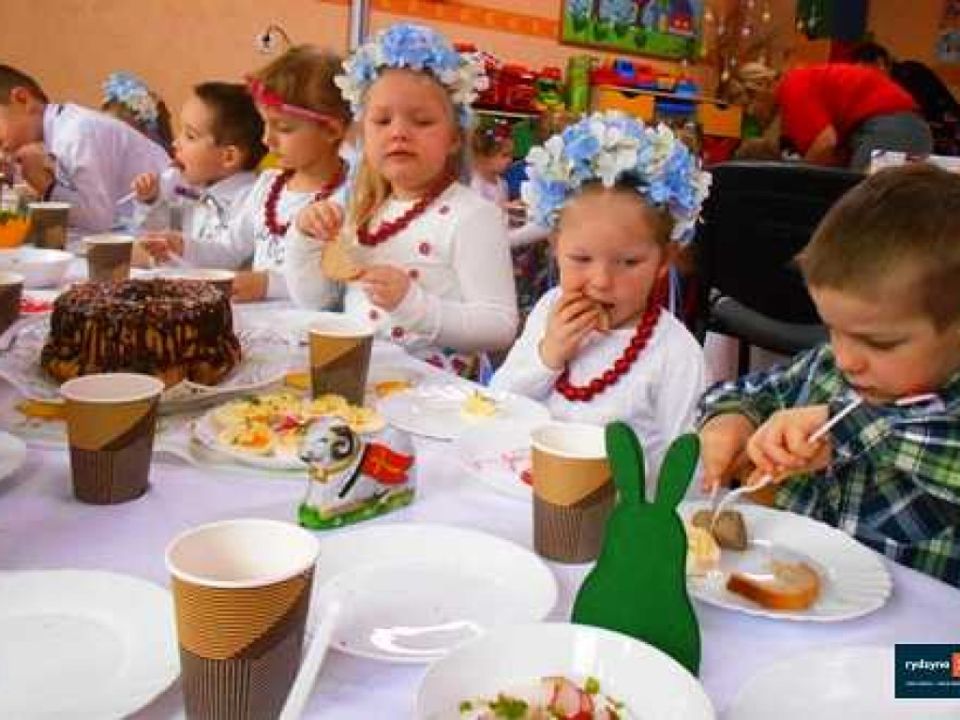 Istnieje wiele tradycji wielkanocnych, które z pokolenia na pokolenie wciąż są kultywowane. Do najpopularniejszych z nich należy święcenie pokarmu, śniadanie wielkanocne przy wspólnym stole z rodziną czy śmigus dyngus. Dzisiaj wszystkie dzieci z Przedszkola Publicznego w Rydzynie, oddział w Dąbczu zasiadły do uroczystego śniadania. Celem tego spotkania było wprowadzenie najmłodszych w nastrój Świąt Wielkanocnych. Dzieci poznały także symbolikę i znaczenie świątecznych pokarmów. Na naszym świątecznym stole znalazły się tradycyjne pokarmy: baranek, kiełbasa, chleb, jajka, baba wielkanocna twaróg z rzodkiewką i szczypiorkiem.
