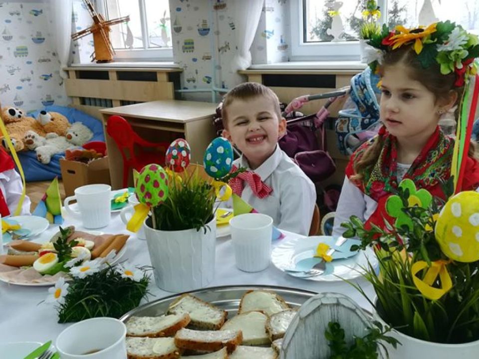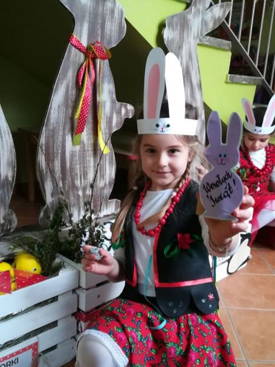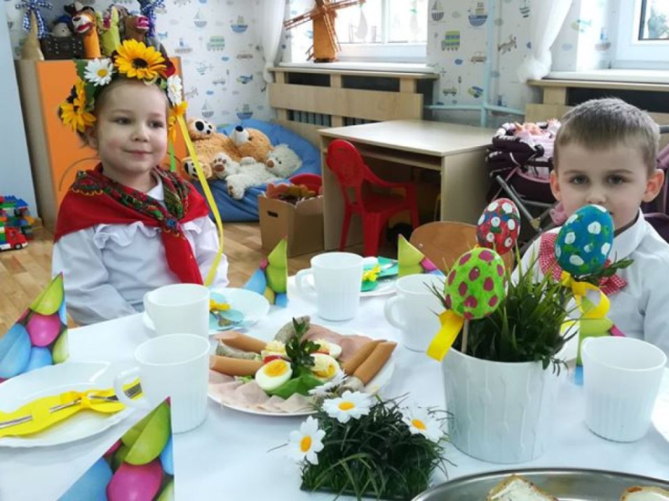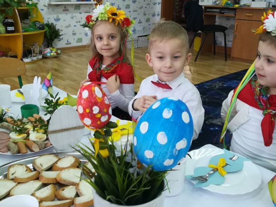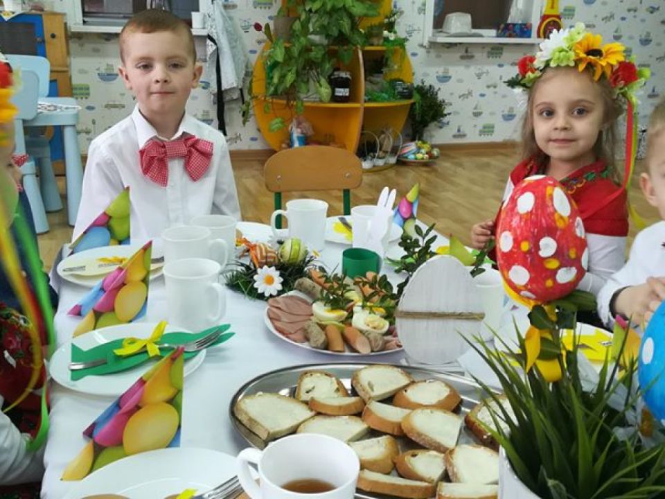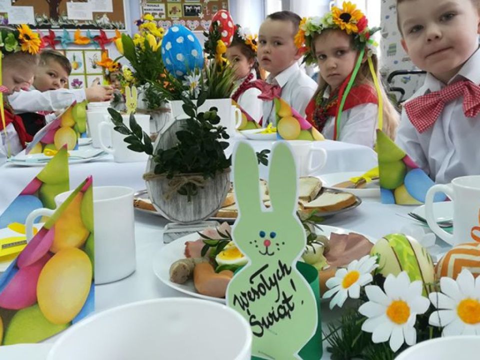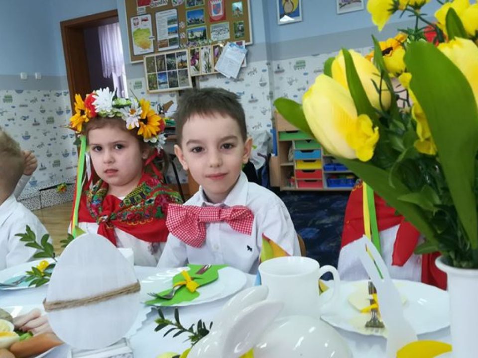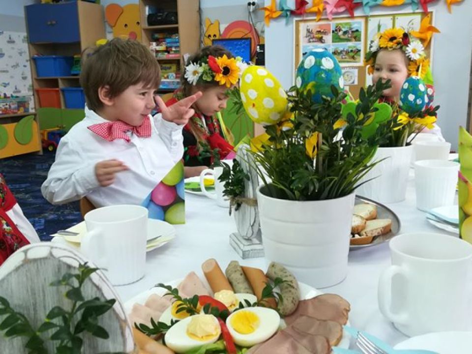 Święta wielkanocne sprzyjają poznawaniu tradycji. Przedszkolaki z grupy Sowy zasiadły do śniadanka w ludowych strojach. Spędziły czas przy dźwiękach wielkanocnych piosenek.