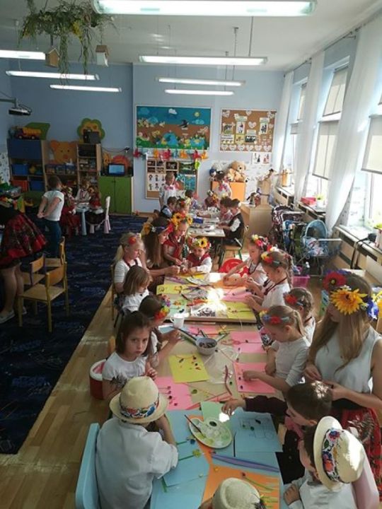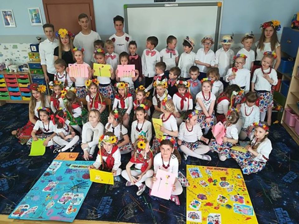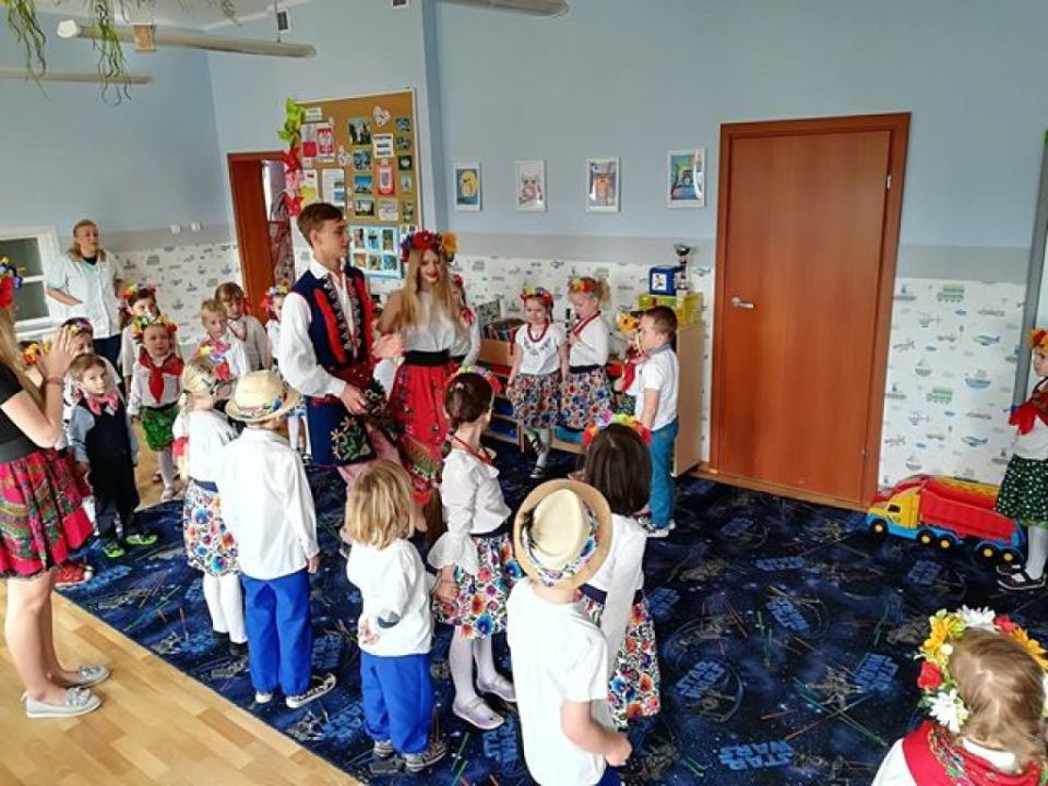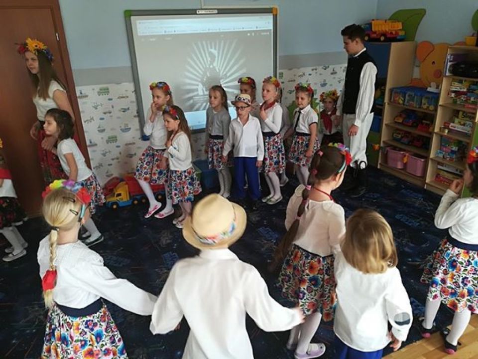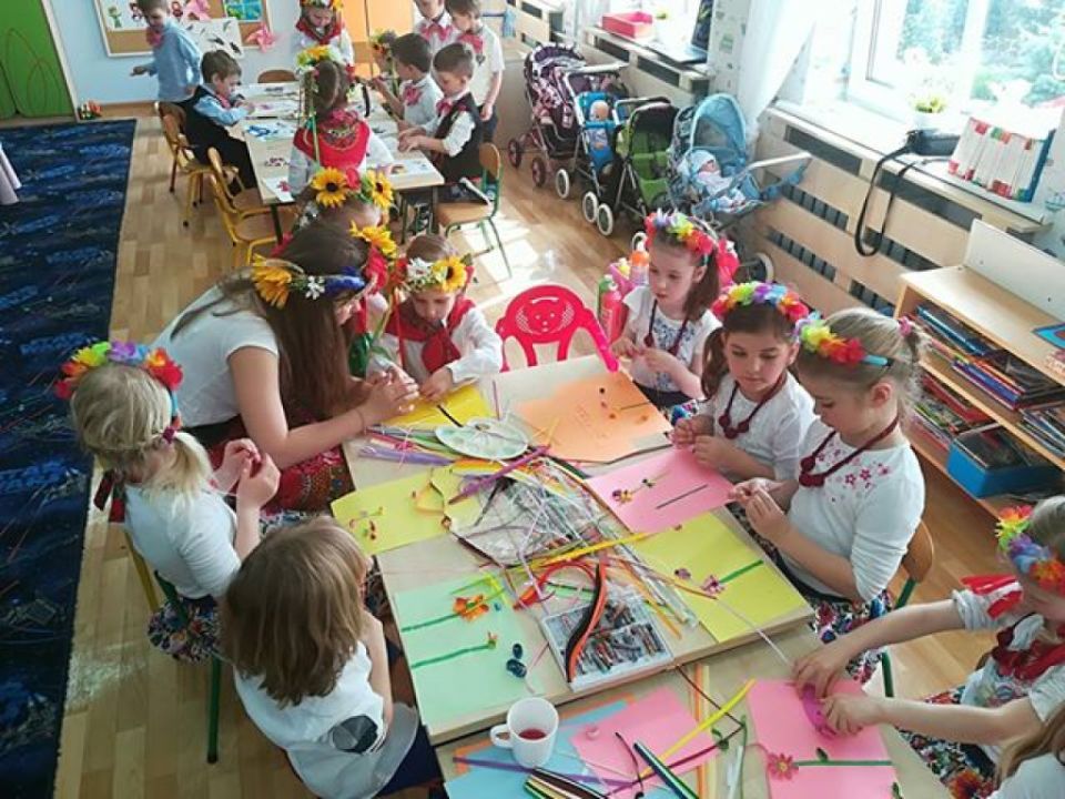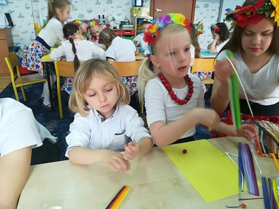 KARnet to projekt skupiający młodzież w sieci Klubów Aktywności Rozmaitych, współfinansowany ze środków Unii Europejskiej w ramach Europejskiego Funduszu Społecznego. Zadaniem klubu jest rozwijanie pasji i zainteresowań młodzieży. Działania w klubie to jedna z ciekawszych i efektywniejszych form edukacji nieformalnej, która nie narzuca sztywnych ram procesu edukacji, jest zorientowana na potrzeby młodzieży, jest dostosowana do indywidualnych preferencji i oparta na metodzie peerlearning, czyli uczenia się rówieśniczego. Młodzież z Rydzyny od kilku już lat, w ramach wolontariatu współpracuje z nauczycielką Beatą Musielak, organizując dla przedszkolaków różnorodne warsztaty, zabawy, zajęcia edukacyjne, pomaga przy organizacji festynów i innych imprez. Tym razem dzięki współpracy KARnetu Rydzyna i Wolontariatu „Zwiastuny” zaprzyjaźniona z przedszkolem młodzież zrealizowała z dziećmi kolejny projekt „Spotkanie z folklorem”. Uczniowie przygotowali wspólnie piękną i ciekawą prezentację, która zawierała krótkie omówienie naszych wielkopolskich tradycji, gwary, obrzędów, zabytków. Dzieci utrwaliły wiadomości na temat potraw wielkopolskich /pyry z gzikiem, plyndze, szagówki, ślepe ryby, kluchy na łachu, rogale Marcińskie…itp./. Utrwaliły również wiadomości na temat koziołków poznańskich i innych wielkopolskich atrakcji, poznały również dalsze tradycje, np. wysłuchały hejnału granego z wieży Mariackiej w Krakowie. Następnie przedszkolacy obejrzeli zatańczony przez Maksymiliana i Alicję taniec ludowy i wszyscy wspólnie zatańczyli w wielkim kole belgijkę, uważnie słuchając instrukcji dotyczących kroków. Ostatnia część warsztatów to działania artystyczne. Dzieci zostały podzielone na zespoły i wykonywały prace z uwzględnieniem stopnia stopnia trudności. Dzieci starsze z gr. Delfinki karbowały paski papieru układając ludowe wzory i tworzyły plakaty o folklorze, młodsze dzieci z gr. Sowy malowały ludowe wzory na szklanych talerzykach i stroje ludowe. Po zakończonej pracy wszyscy zasłużyli na nagrody. Były zakładki, podstawki pod kubek oraz piękne linijki. Wspólne zdjęcie uwieńczyło przepiękne i niezwykle twórcze zajęcia. Dziękujemy serdecznie uczniom klasy III – Alicji Siecla, Danieli John, Maksymilianowi Paszek, Wiktorowi Banaszak i Zofii Bańkowiak. Następny projekt już wkrótce /opiszemy na pewno!!!