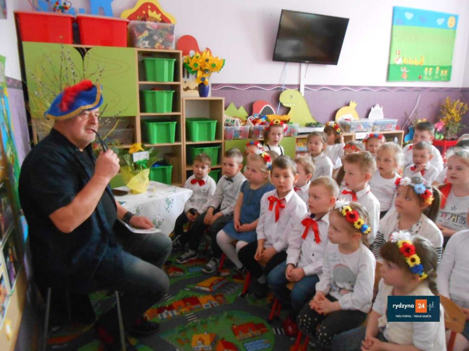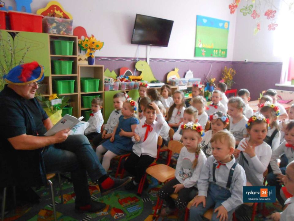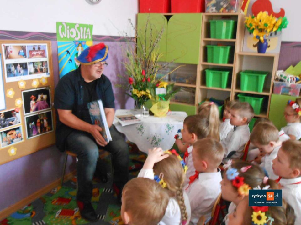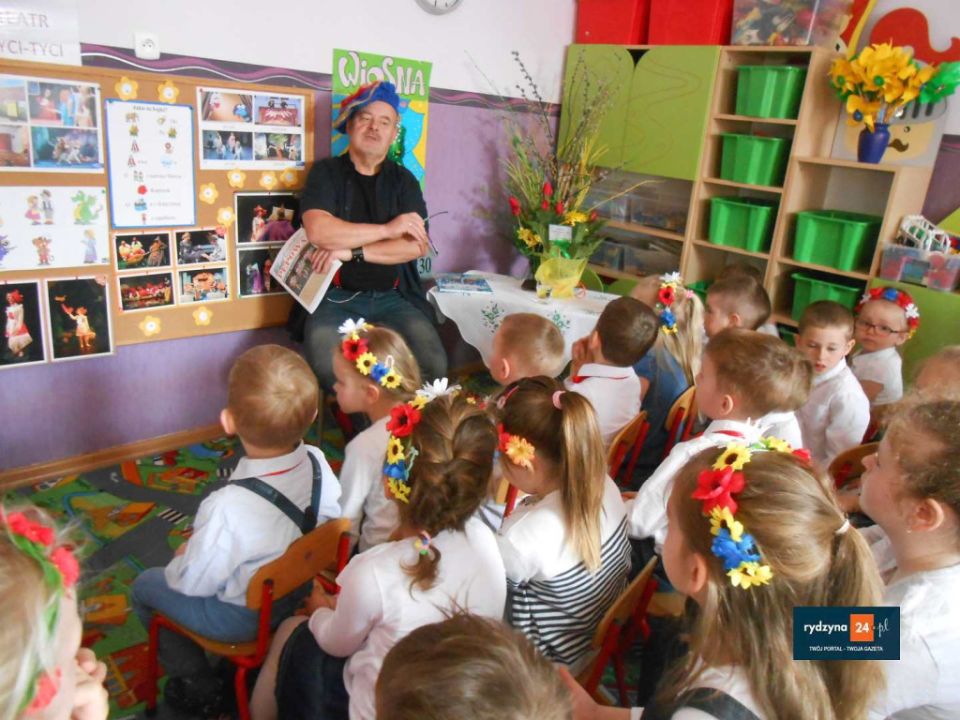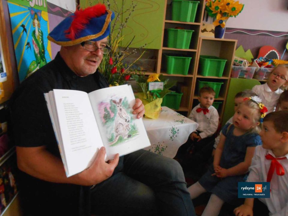 W kwietniu ,,Pszczółki” i ,,Biedronki” brały udział w niecodziennym spotkaniu ze znakomitym poetą Gabrielem Roszakiem, które odbyło się w Przedszkolu w Kłodzie.