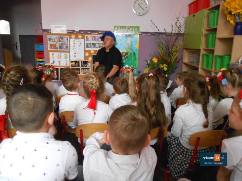 Artysta opowiadał dzieciom ciekawe historie z życia i odpowiadał na pytania dzieci, wiemy, że zawsze ma przy sobie coś do pisania, by nie zmarnować inspirujących go chwil. Dzieci gromkimi brawami podziękowały za spotkanie.