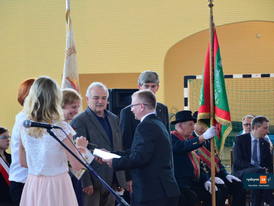 Kolejną częścią uroczystości był apel na hali sportowej. Dyrektor przywitał gości oraz wręczył podziękowania pracownikom odchodzącym na emeryturę. Apel stanowił okazję do nagrodzenia uczniów, biorących udział w konkursach.