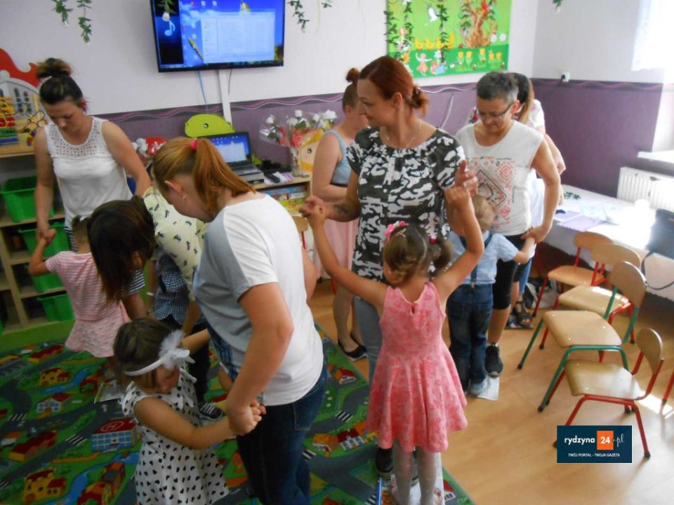 Uroczystość z okazji Dnia Mamy  to doskonała okazja nie tylko do występów artystycznych, ale także pogłębienia więzi emocjonalnych między mamą a dzieckiem. Zgodnie z tą ideą ,,Pszczółki” z oddziału  przedszkolnego w Kłodzie, po występie artystycznym, odśpiewaniu 100, złożeniu życzeń, wręczeniu laurek i kwiatów,   zaprosiły swoich najbliższych do wspólnej zabawy.