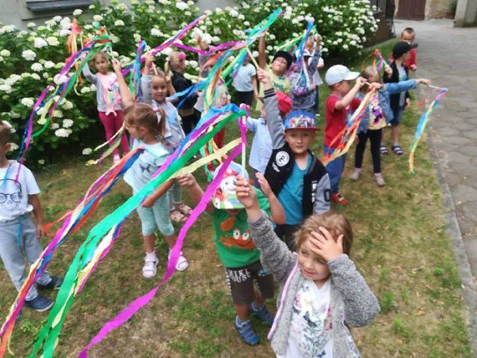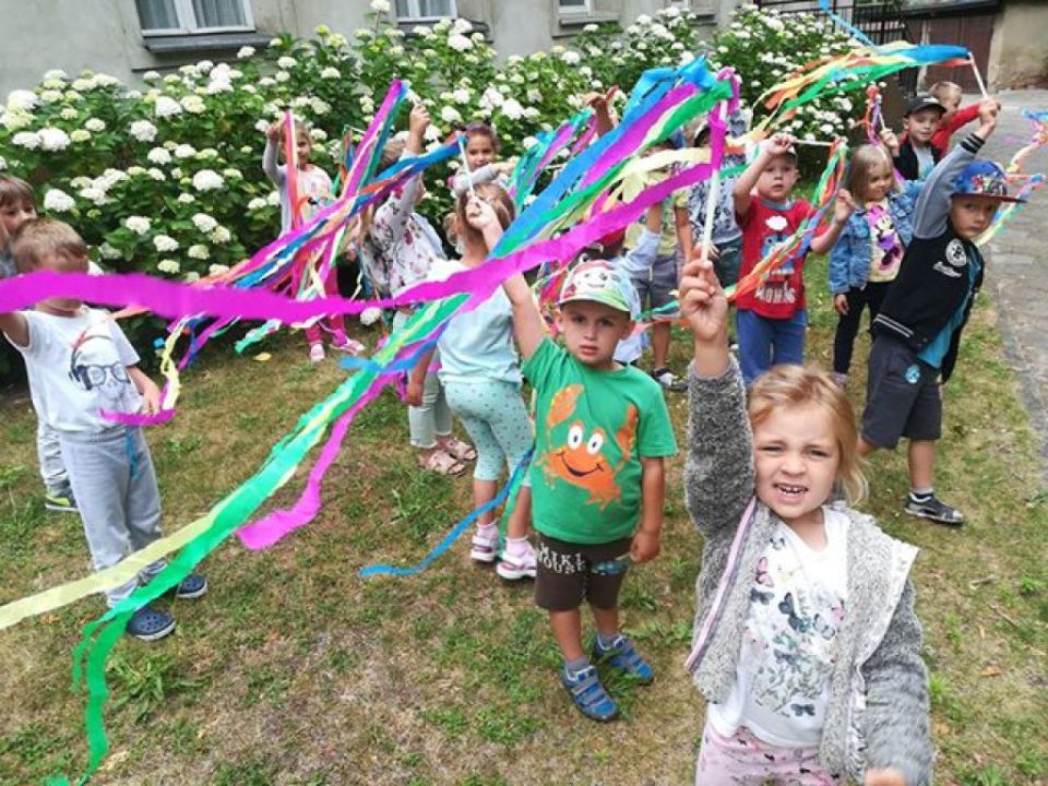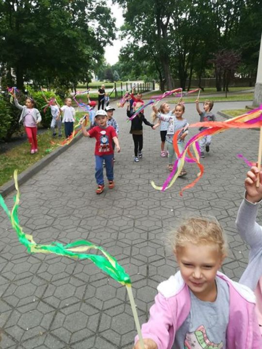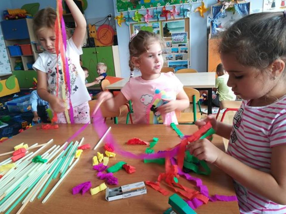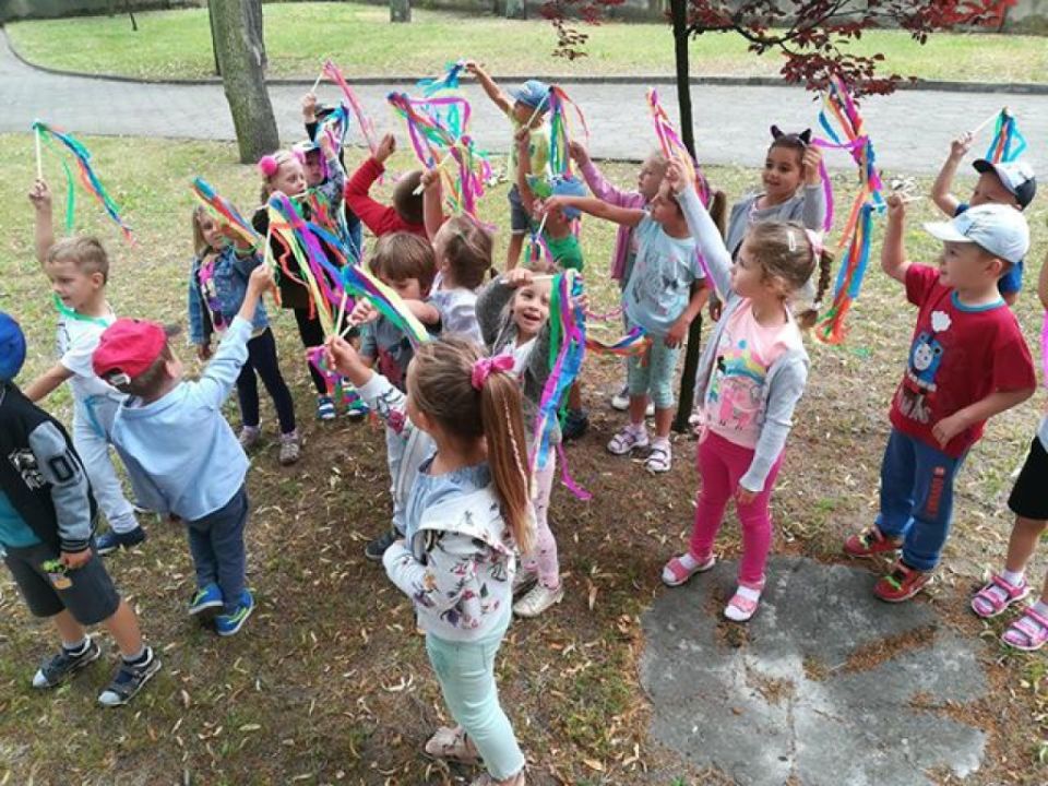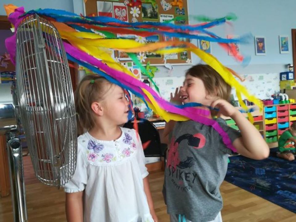 Przedszkole w Rydzynie przygotowuje się do nadania imienia swojej placówce. Imię to będzie bardzo wdzięczne „Kolorowy wiatraczek”. Panie podejmują więc wiele działań mających na celu przybliżenie dzieciom nazwy poprzez konkursy plastyczne, zabawy i wycieczki do wiatraka, poznanie różnorodnych żywiołów i źródeł wytwarzających prąd jak np. wiatraki. Wietrzne, letnie dni są idealne do zabaw z wiatrem. Dzieci z gr. Sowy wykonały samodzielnie kolorowe zabawki do doświadczeń z wiatrem i poszły na spacerek żeby sprawdzić skąd wieje wiatr i jaką ma siłę. Zamiast traktować wiatr jako przeszkodę, która targa włosy i sypie piachem w oczy, wykorzystajcie go do wesołych zabaw na powietrzu. Ale możecie użyć do zabawy również wiatraczki, które są w sali czy w domu lub swoją buzię, z której wydobywa się lekki wiaterek poprzez dmuchanie.