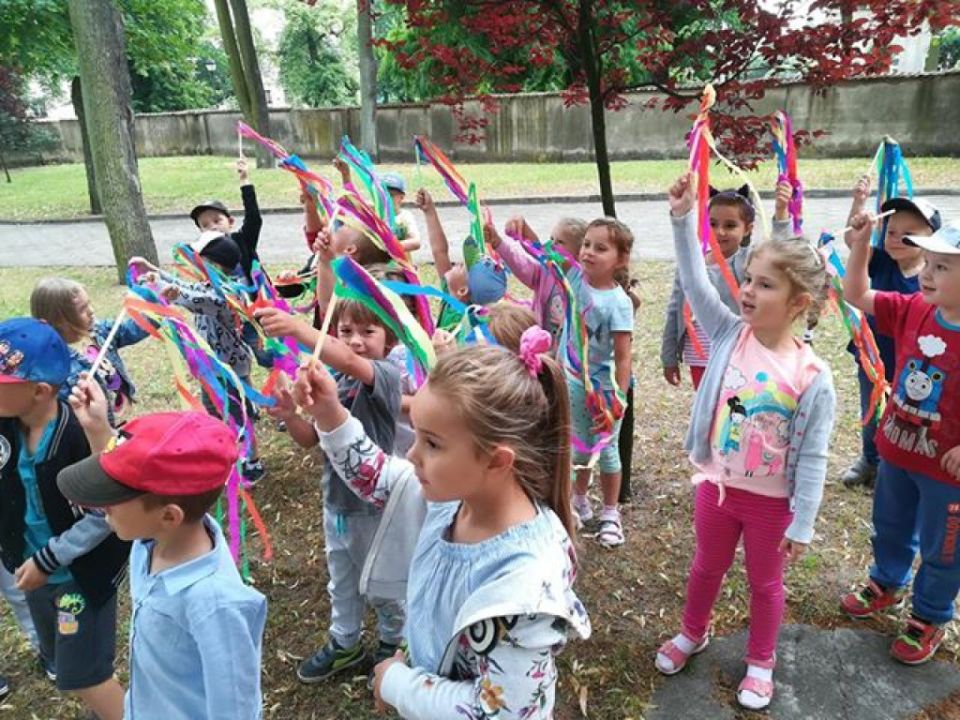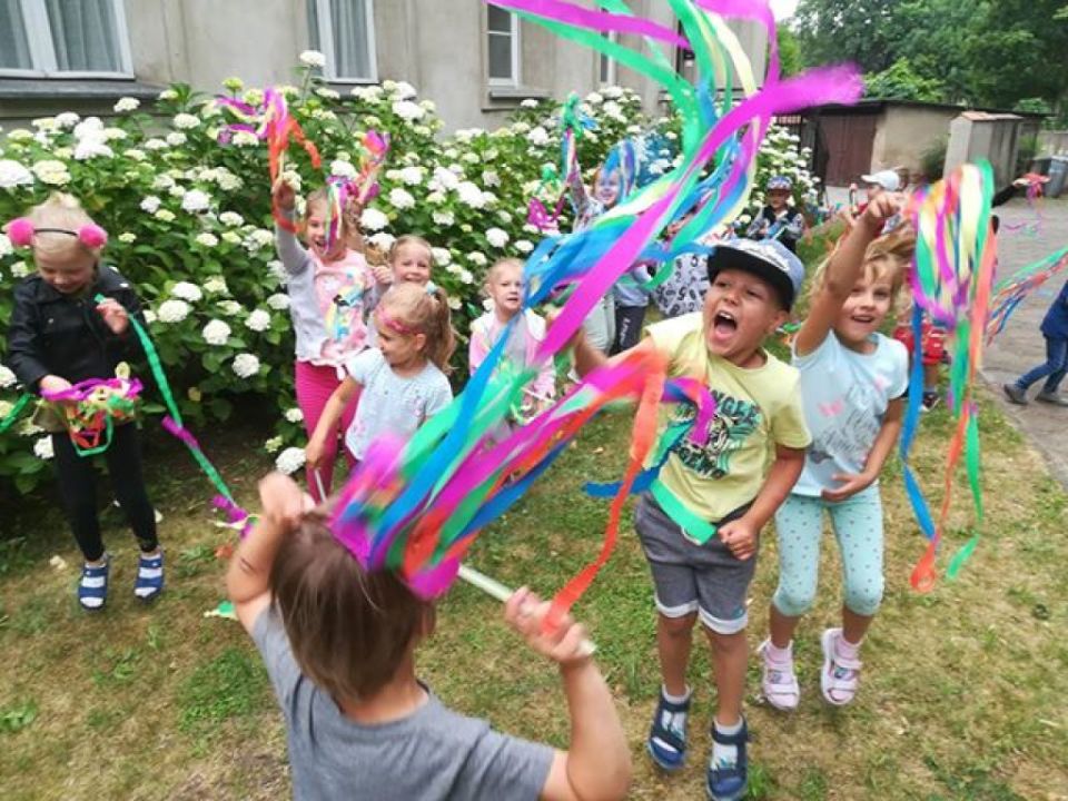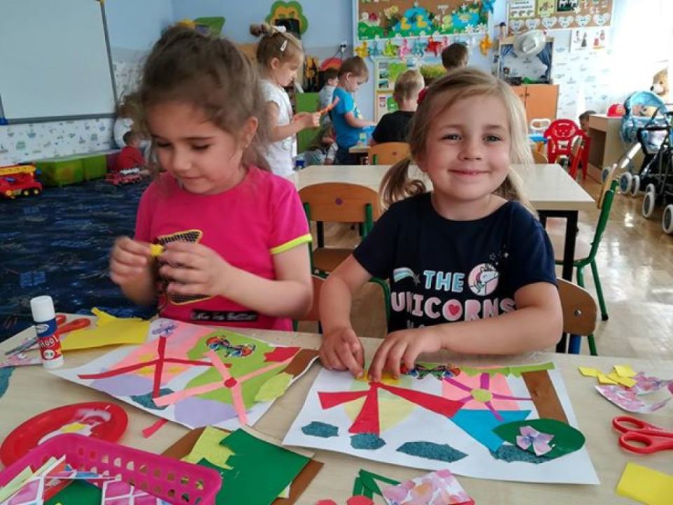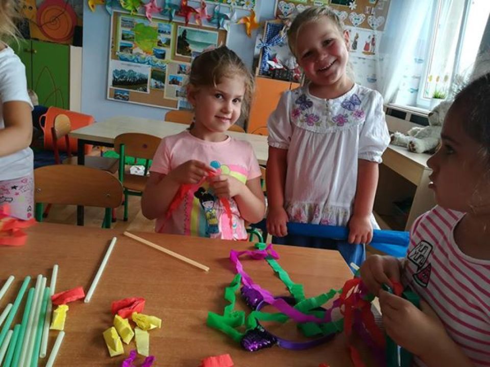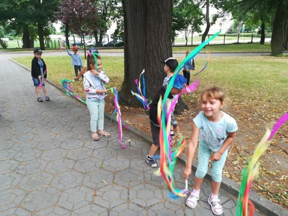 Przedszkole w Rydzynie przygotowuje się do nadania imienia swojej placówce. Imię to będzie bardzo wdzięczne „Kolorowy wiatraczek”. Panie podejmują więc wiele działań mających na celu przybliżenie dzieciom nazwy poprzez konkursy plastyczne, zabawy i wycieczki do wiatraka, poznanie różnorodnych żywiołów i źródeł wytwarzających prąd jak np. wiatraki. Wietrzne, letnie dni są idealne do zabaw z wiatrem. Dzieci z gr. Sowy wykonały samodzielnie kolorowe zabawki do doświadczeń z wiatrem i poszły na spacerek żeby sprawdzić skąd wieje wiatr i jaką ma siłę. Zamiast traktować wiatr jako przeszkodę, która targa włosy i sypie piachem w oczy, wykorzystajcie go do wesołych zabaw na powietrzu. Ale możecie użyć do zabawy również wiatraczki, które są w sali czy w domu lub swoją buzię, z której wydobywa się lekki wiaterek poprzez dmuchanie.