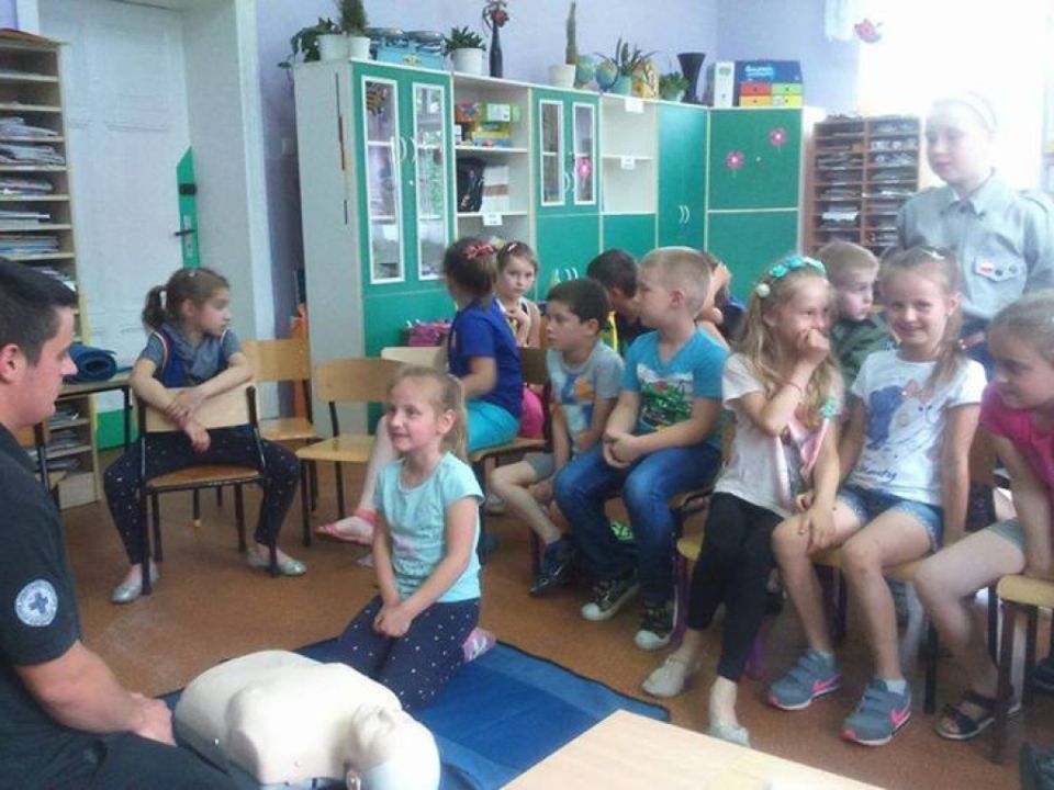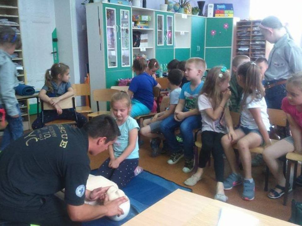 W ramach przygotowań do złożenia „Przysięgi Zuchowej” młoda gromada dowiedziała się podstawowych rzeczy na temat pierwszej pomocy. Instruktaż przeprowadziła  Ochotnicza Straż Pożarna w Rydzynie.